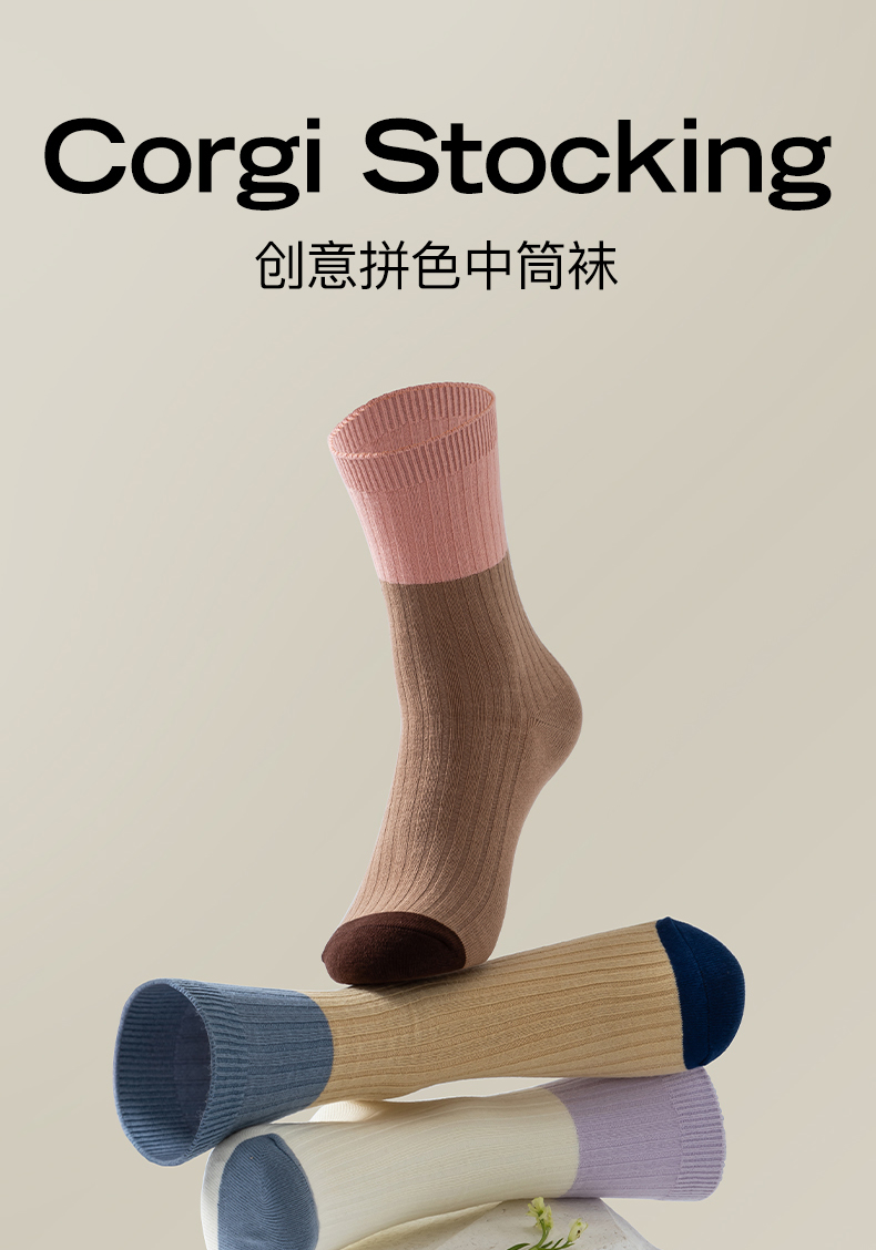 【云优选】英国CORGI 威尔士风情创意拼色中筒袜 三双精美组合装