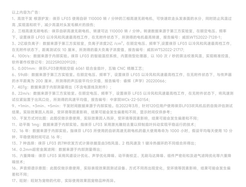 Laifen徕芬高速吹风机LF03家用负离子护发速干大风力莱芬电吹风筒