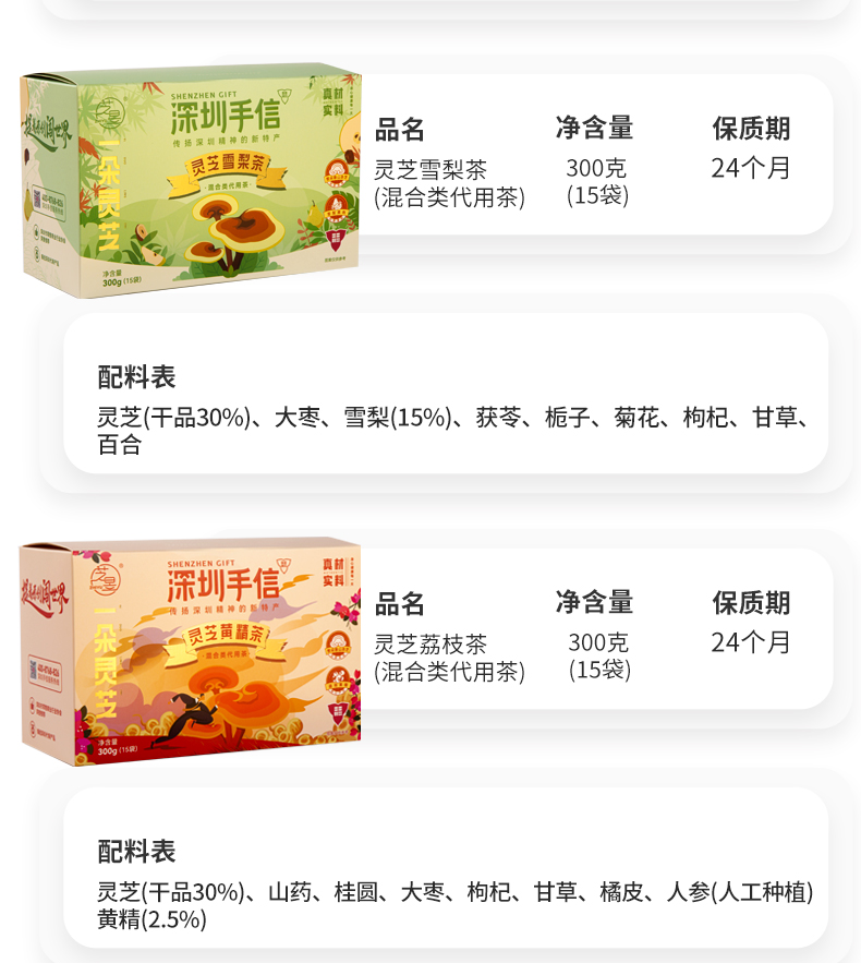 深圳手信芝昱一朵灵芝茶300g(15包)(四种口味)