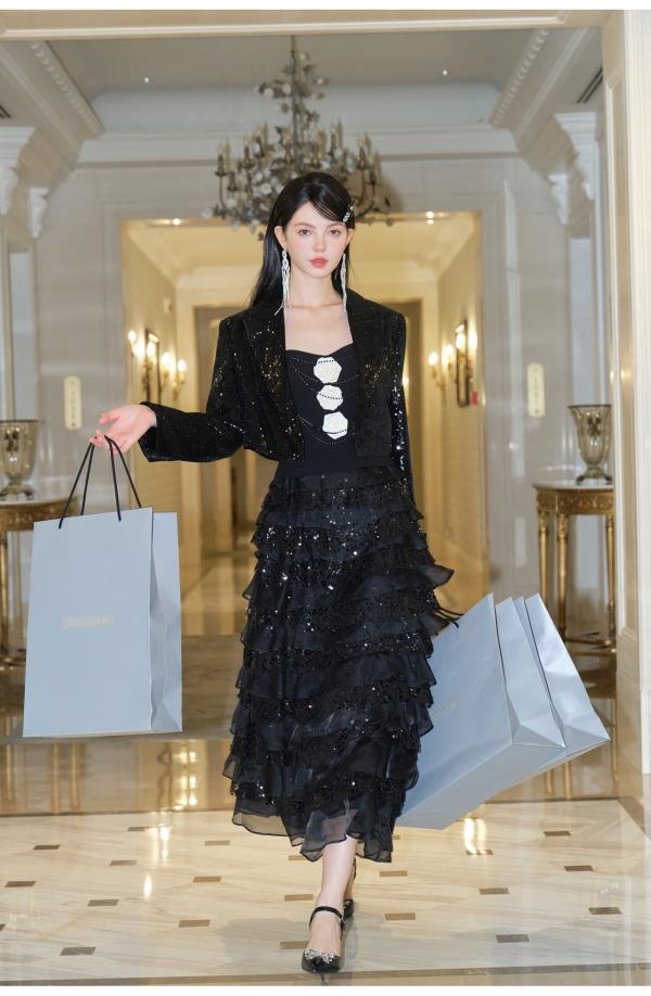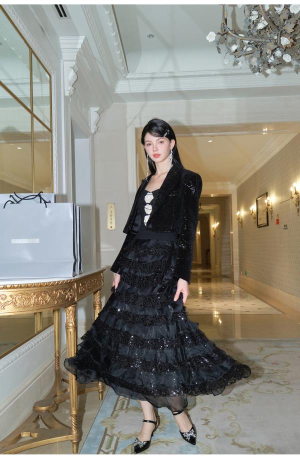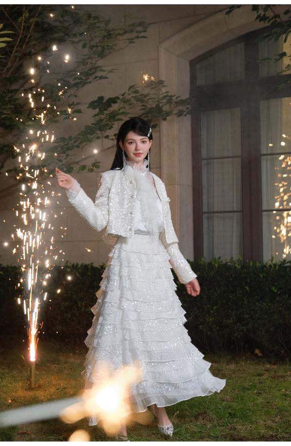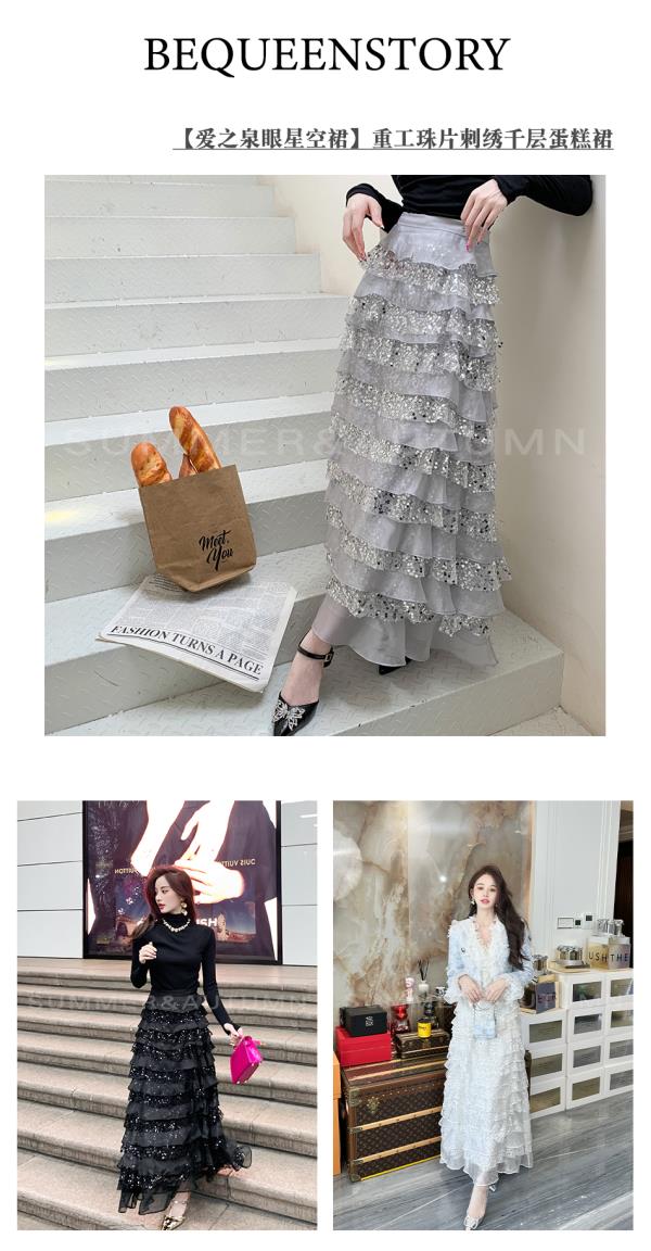 BeQueenStory【爱之泉眼星空裙】轻奢重工珠片刺绣仙气千层蛋糕裙