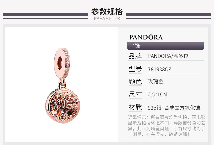 PANDORA/潘多拉女士铜银合金时尚串饰吊坠项链手链配饰781988CZ