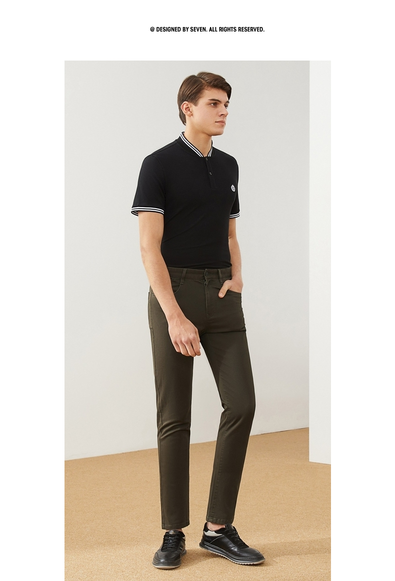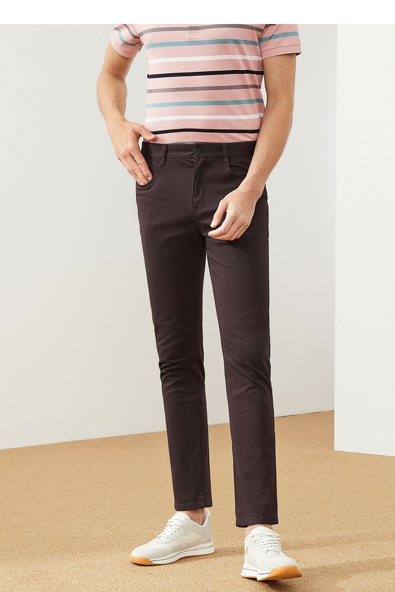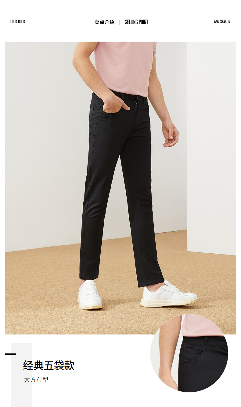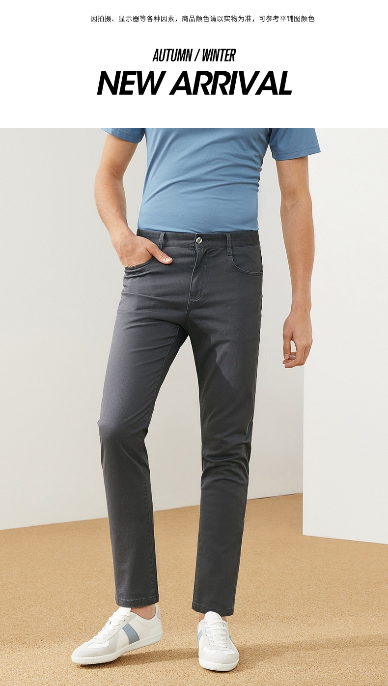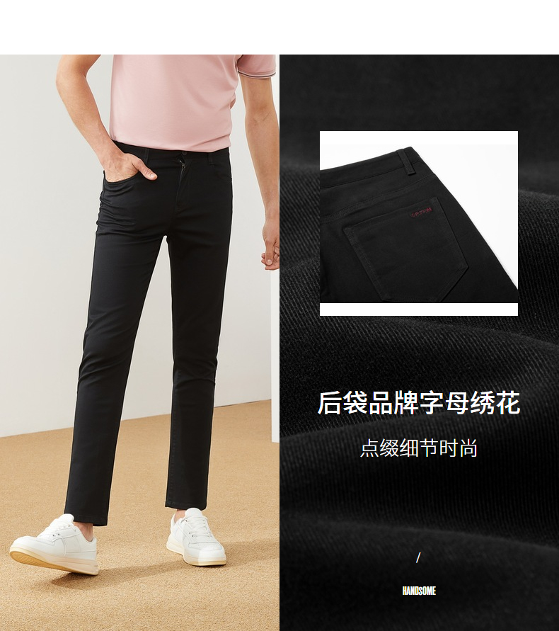 【特价】柒牌男装年秋冬新款休闲梭织长裤五袋款微弹透气字母绣花裤子 121H71530