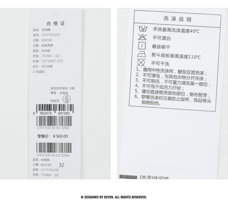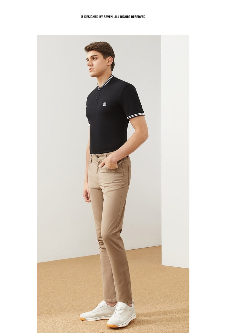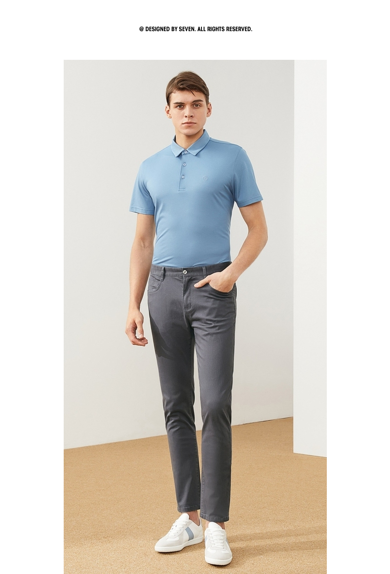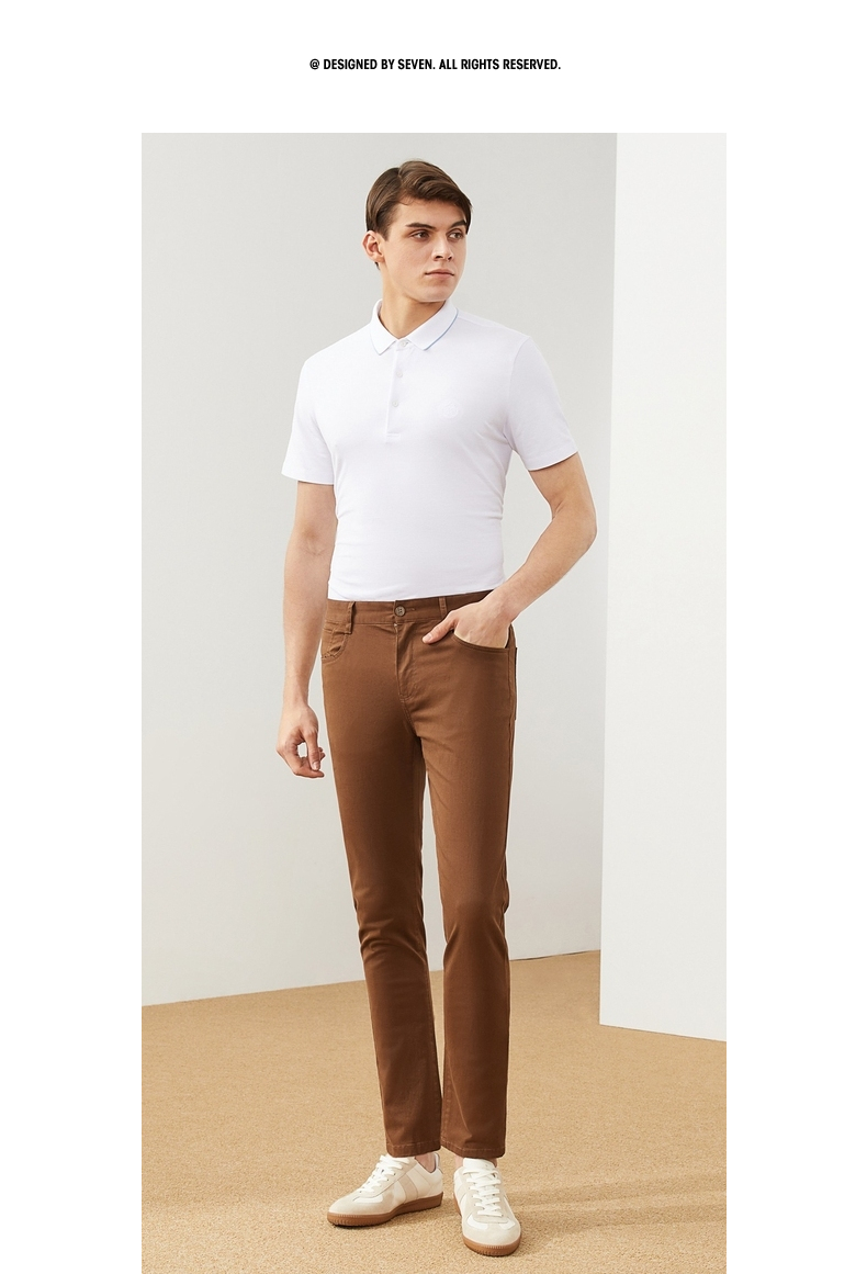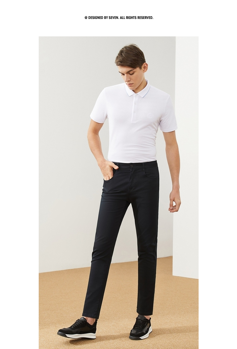 【特价】柒牌男装年秋冬新款休闲梭织长裤五袋款微弹透气字母绣花裤子 121H71530