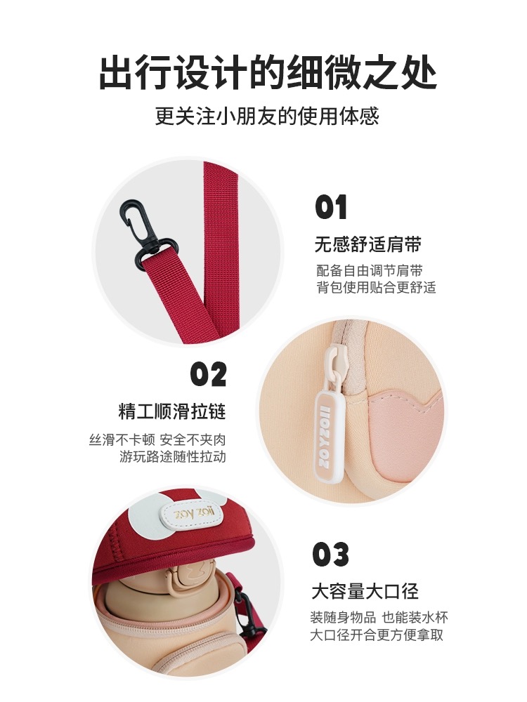 zoyzoi儿童斜挎包男童女童包包 宝宝外出旅游小背包小孩可爱腰包 轻盈不勒肩,背一整天都没压力!小巧便携可爱百搭~