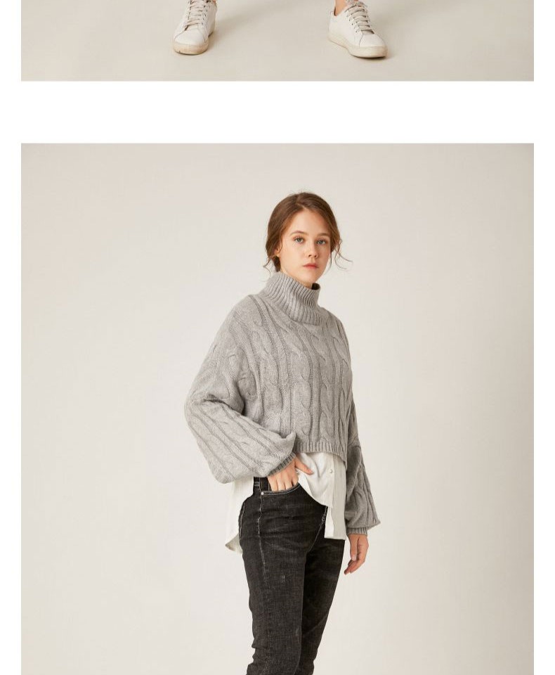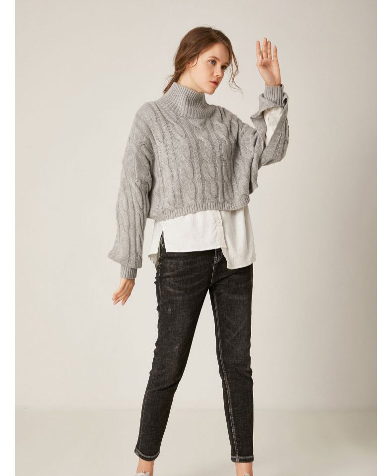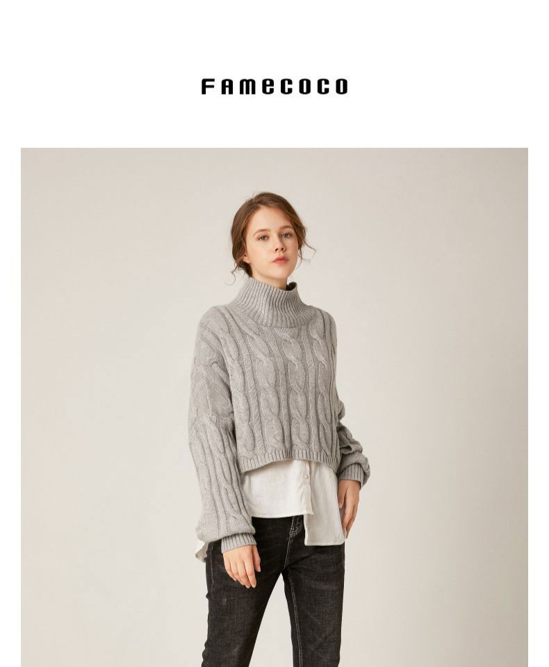 Famecoco范可儿时尚短款毛衣高领宽松显瘦毛针织衫女F198DB019