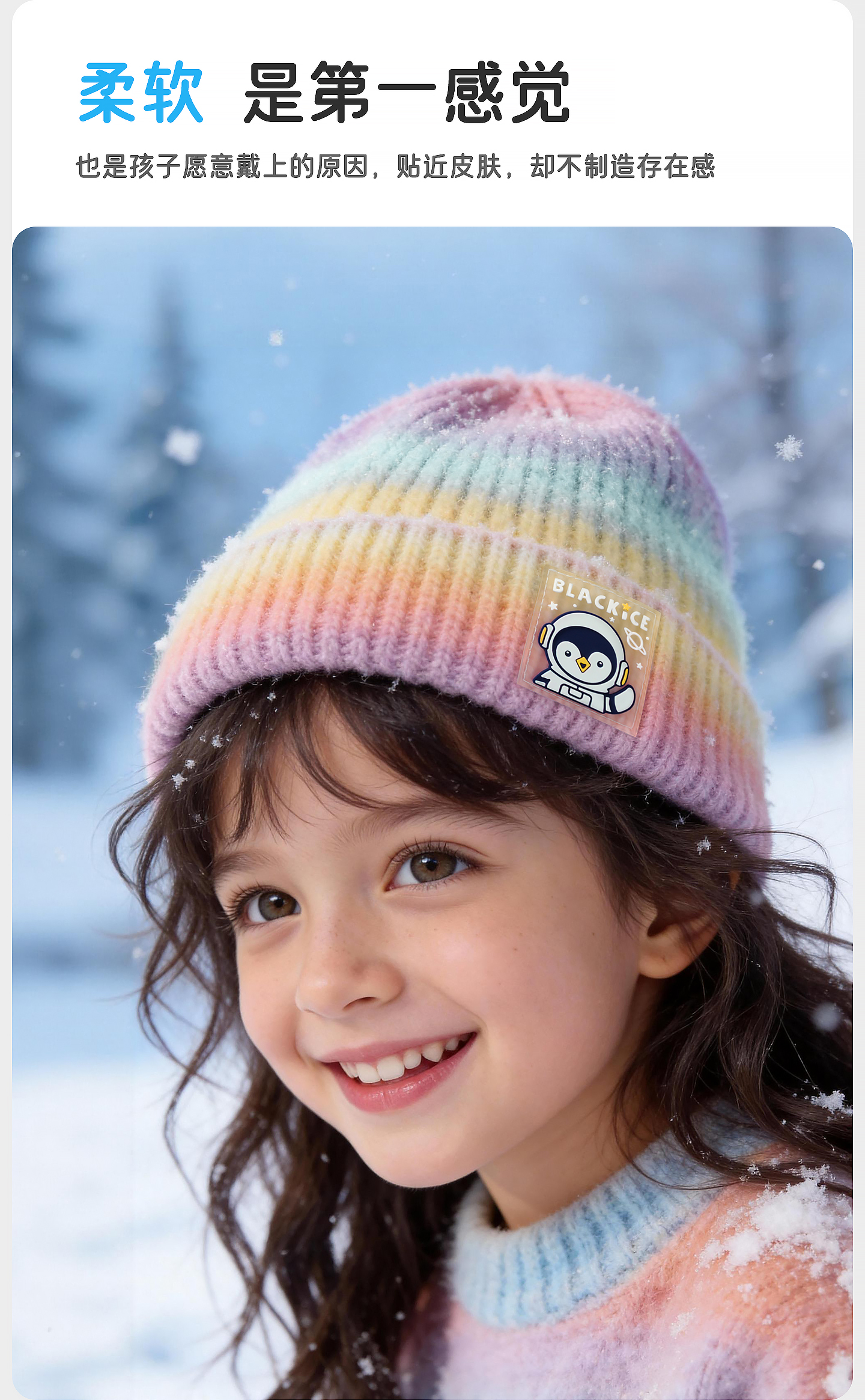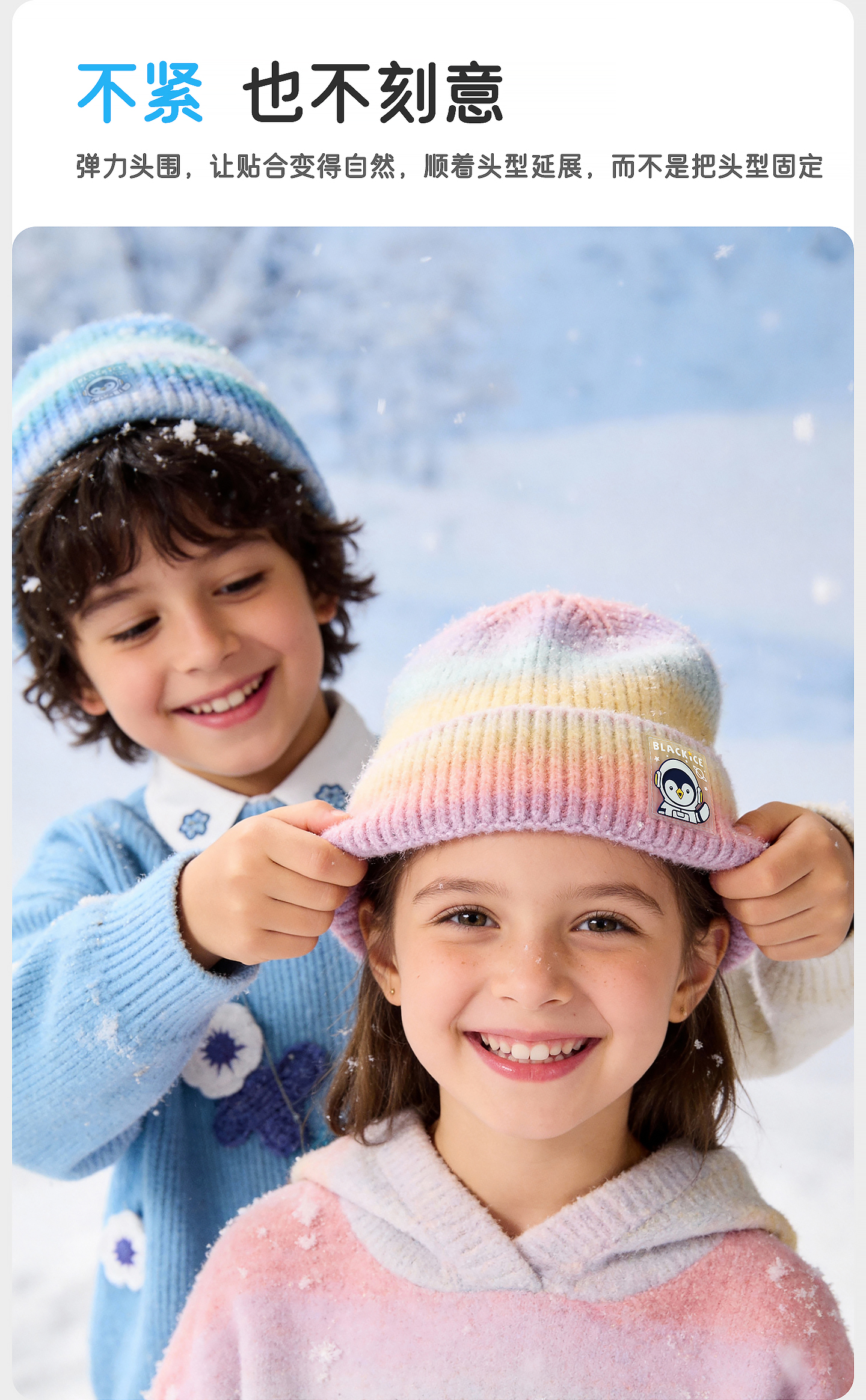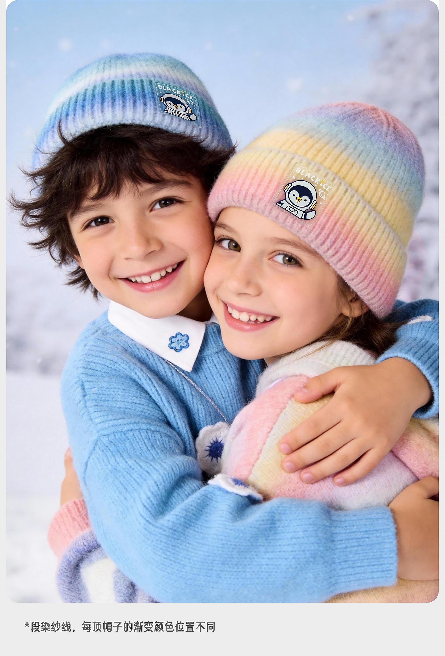 黑冰儿童针织帽男女童时尚渐变软糖秋冬柔软百搭保暖套头帽子2143