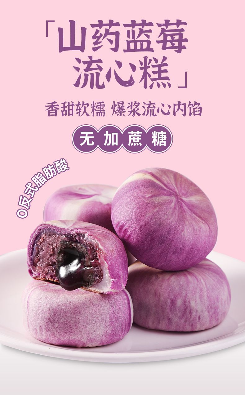 【山药蓝莓流心糕】| 元和优选 不单独添加蔗糖,软糯馅料,爆浆流心,松软酥皮,Q弹雪媚娘!老人小孩下午茶休闲养生糕点食品早餐代餐零食rui