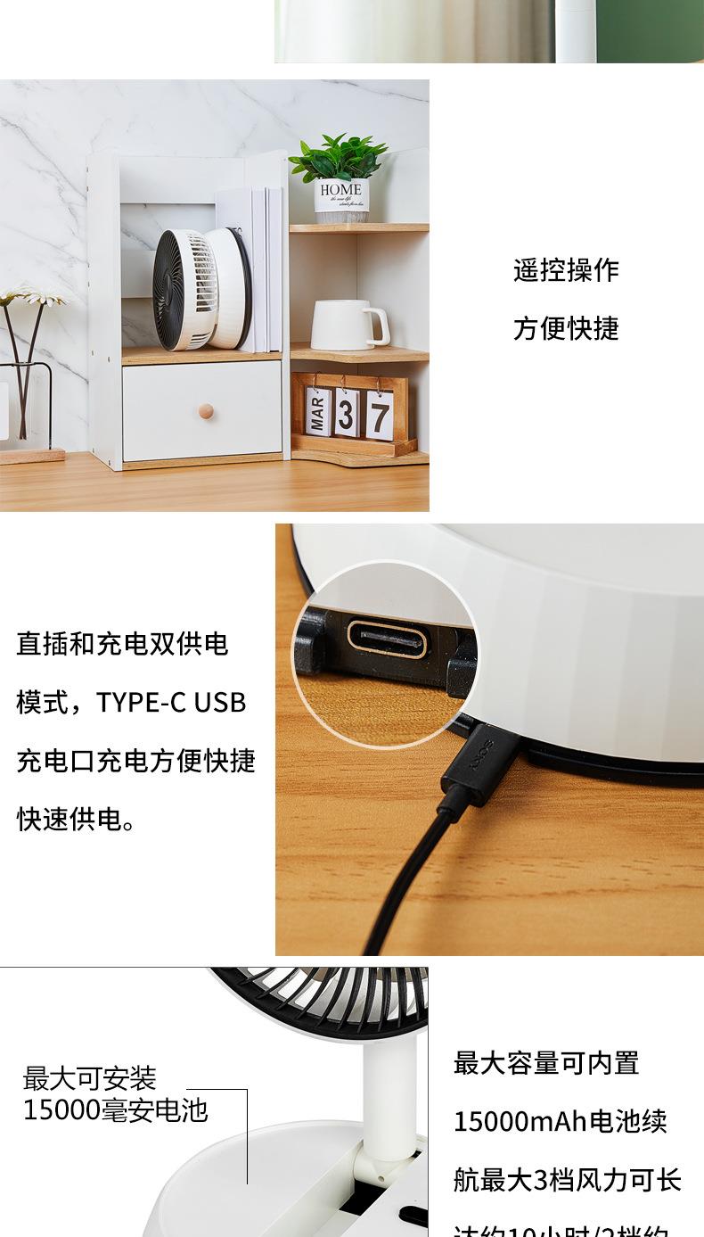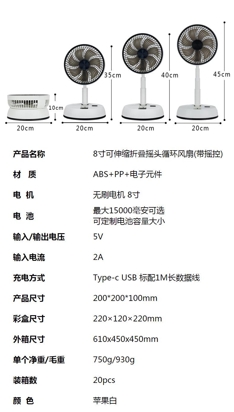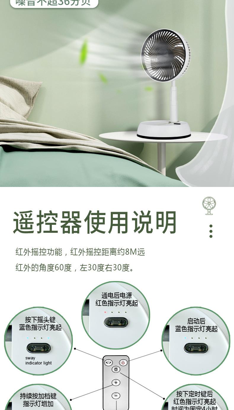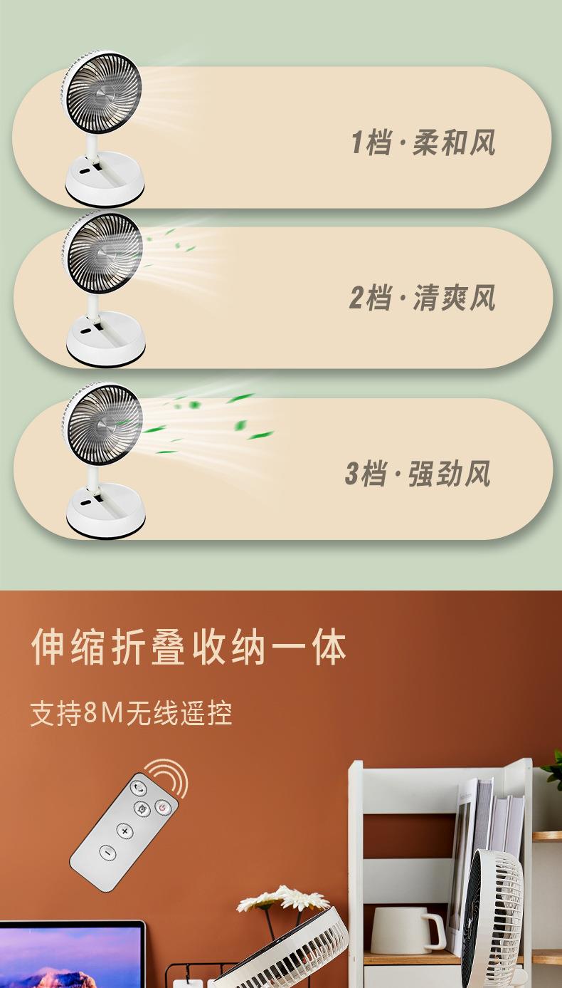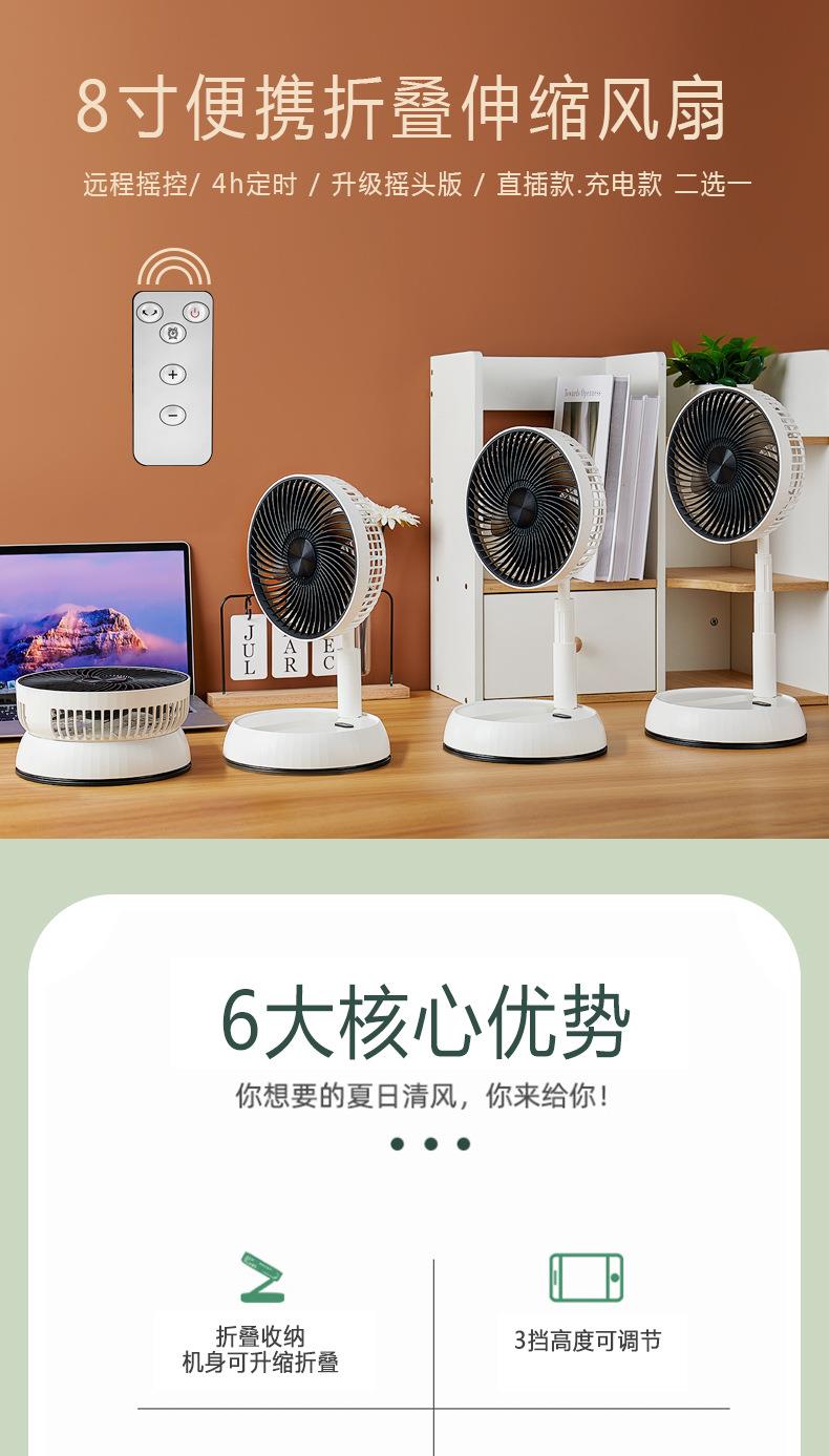 折叠风扇遥控桌面伸缩自动摇头风扇便捷台式USB充电学生宿舍电扇