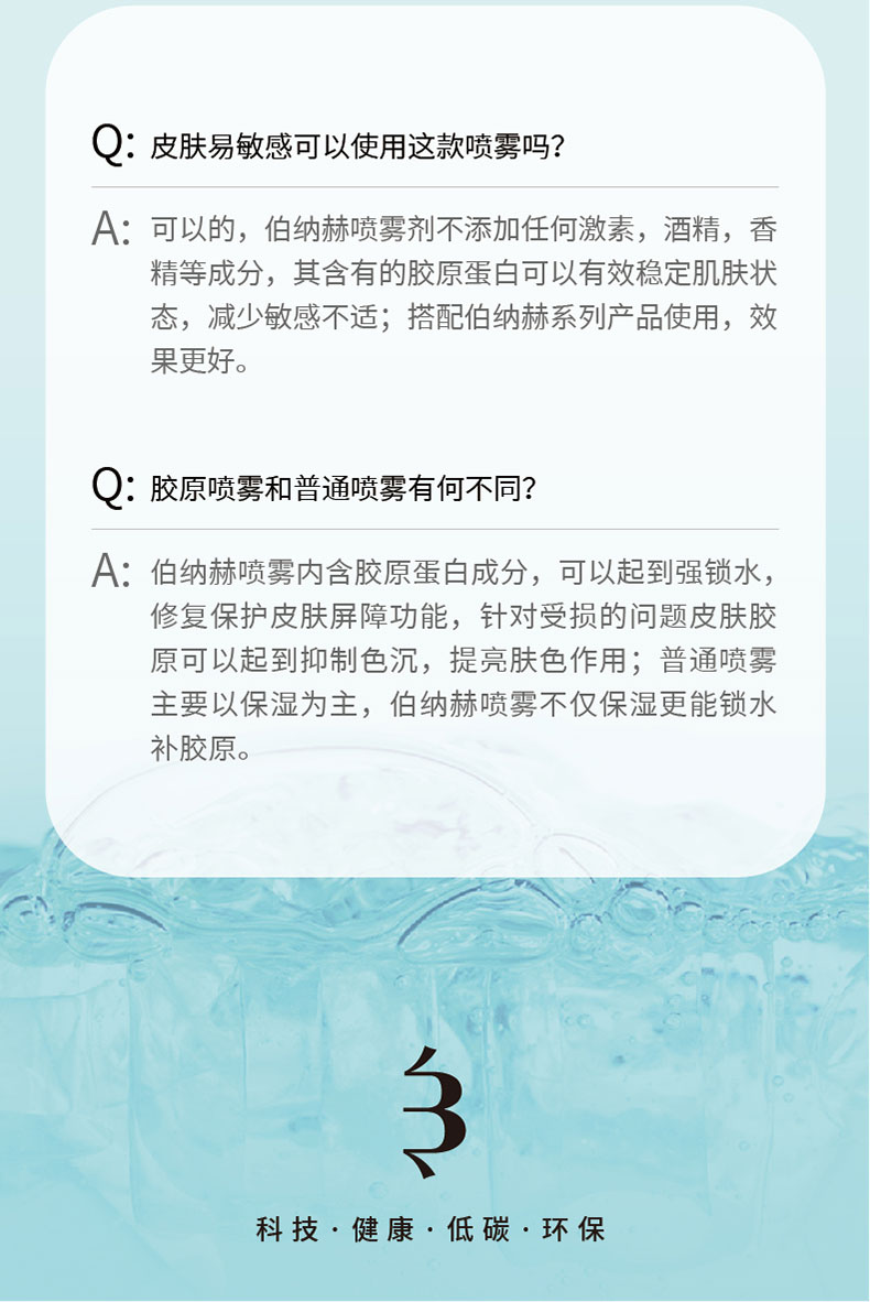 伯纳赫的产品属于大分子人源胶原,会在液体(尤其是喷雾、凝胶)里面产生些许的自交联现象(就是多个胶原蛋白分子自发结合成更大的分子),不影响使用效果,可以放心使用的