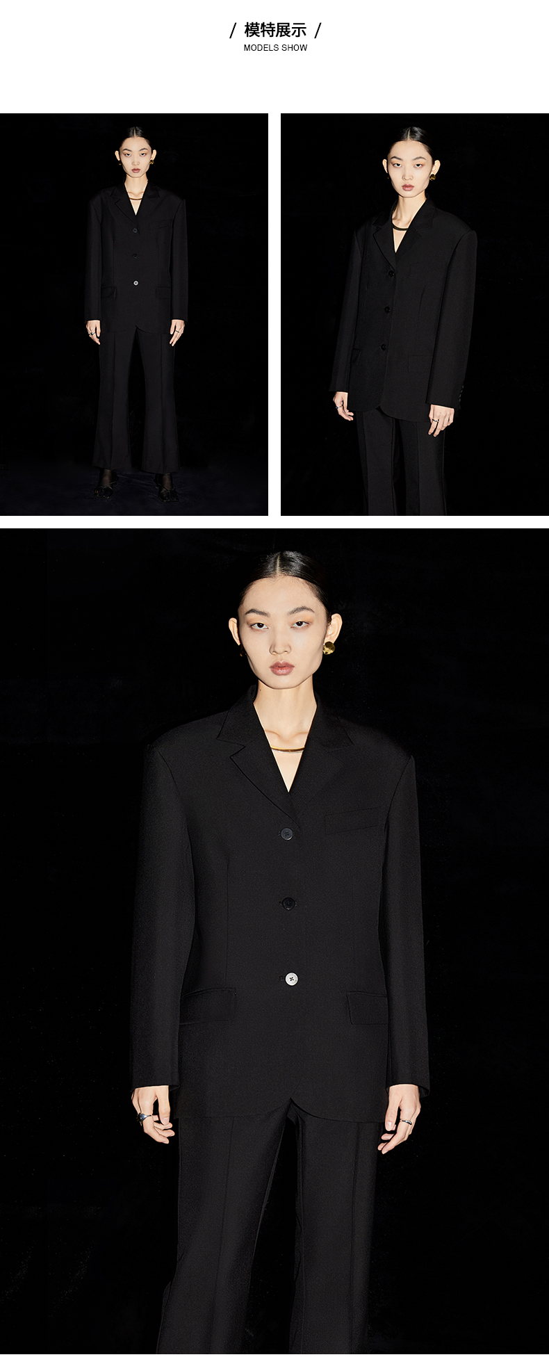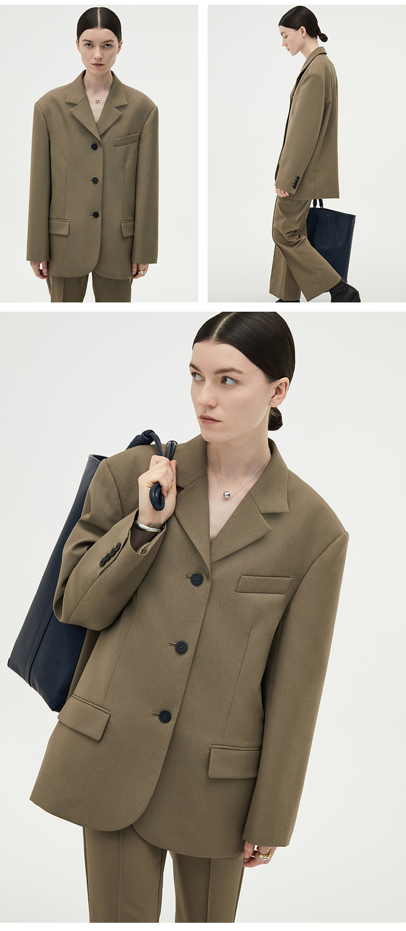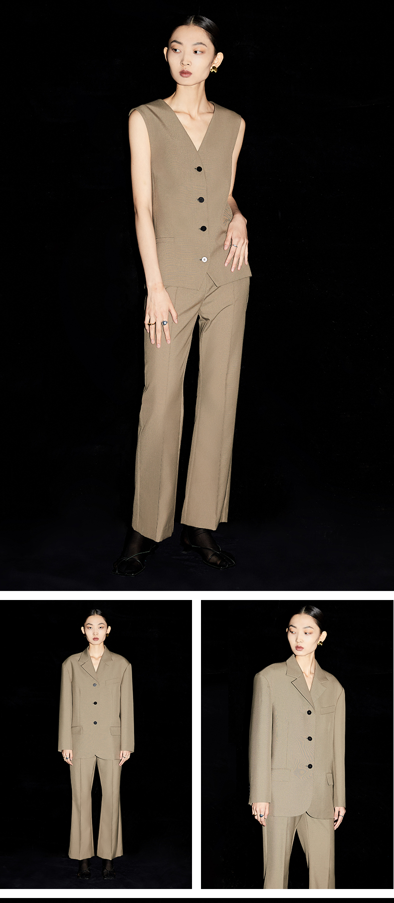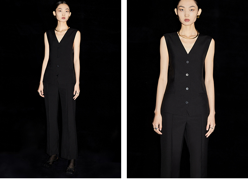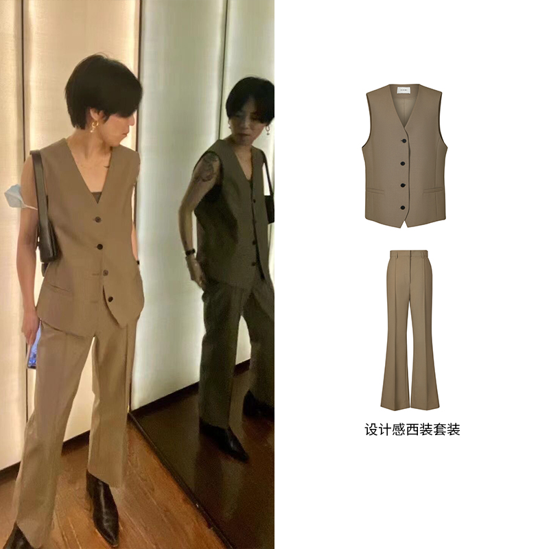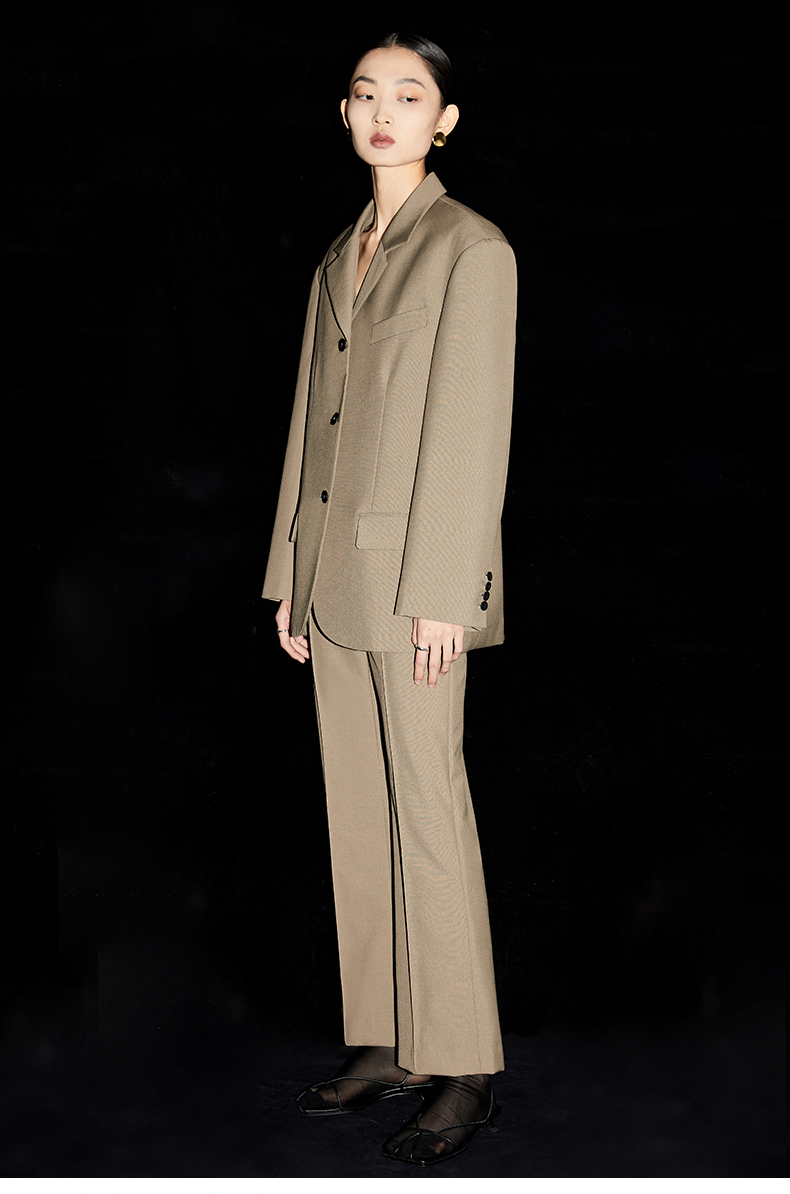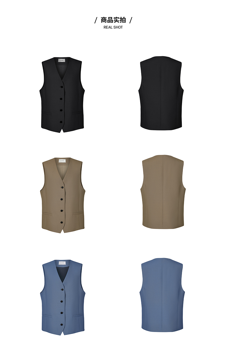 HIDEMI 简约廓形西装三件套西装/马夹/长裤 巧克力棕/黑色