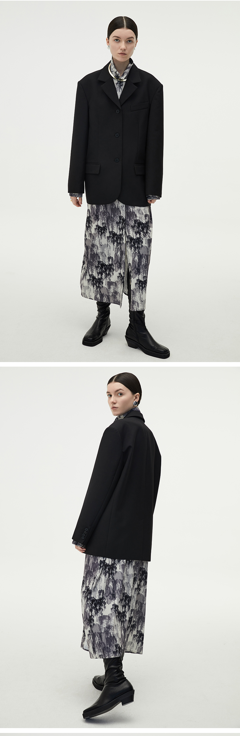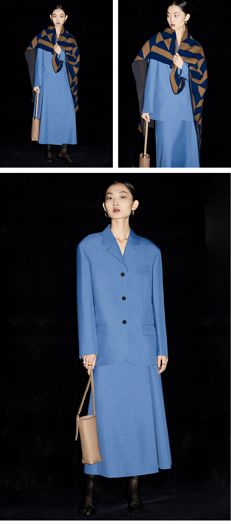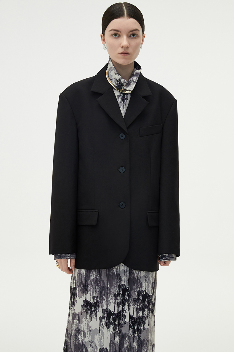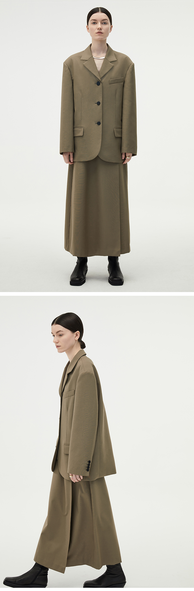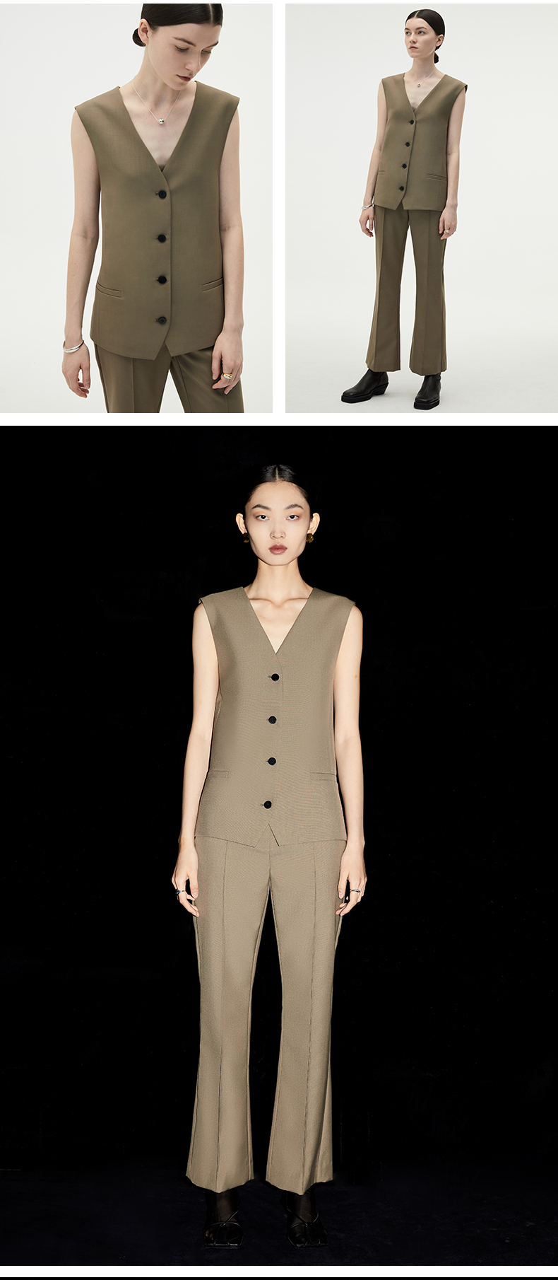 HIDEMI 简约廓形西装三件套西装/马夹/长裤 巧克力棕/黑色