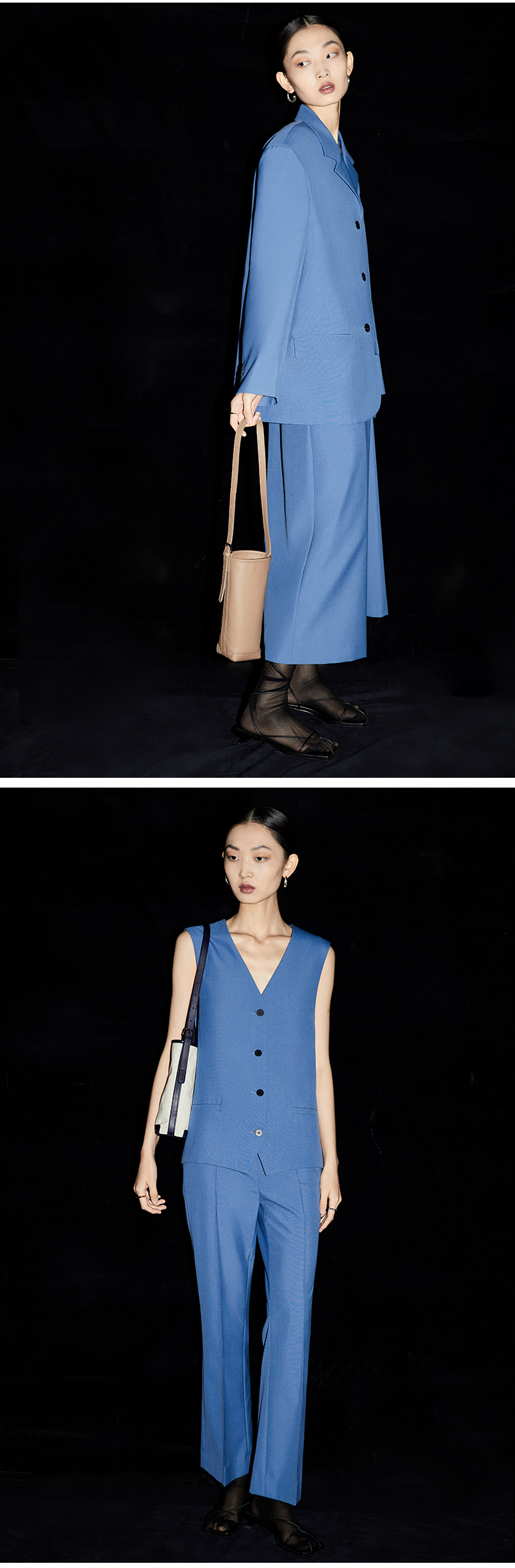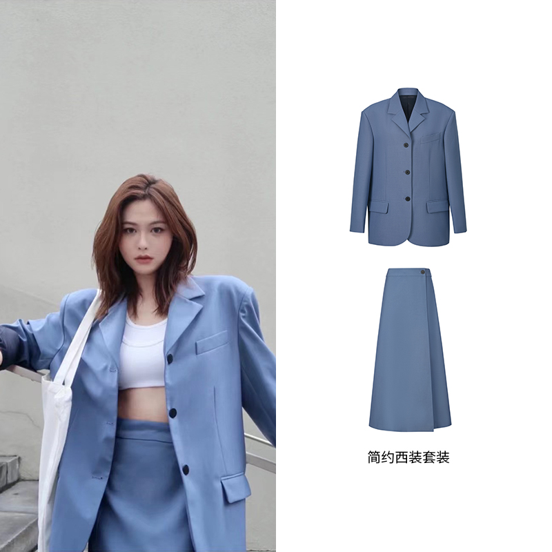 HIDEMI简约设计感西装四件套/西装/马甲/半裙/九分裤