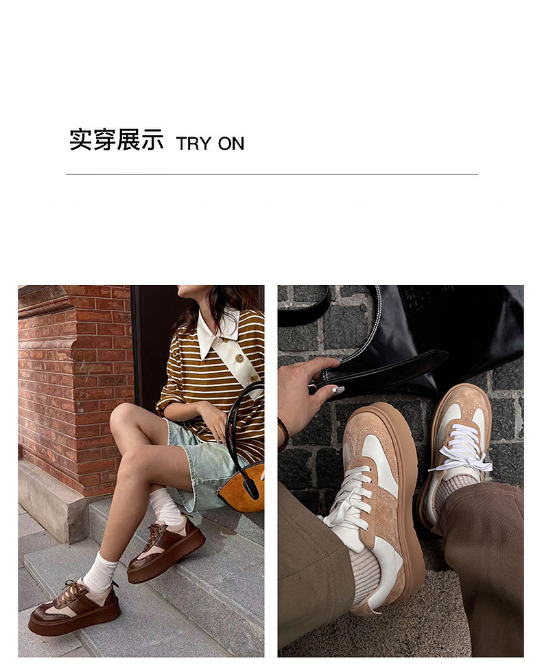 lost in echo2025秋冬新款时尚复古手工布洛克真皮厚底休闲运动鞋