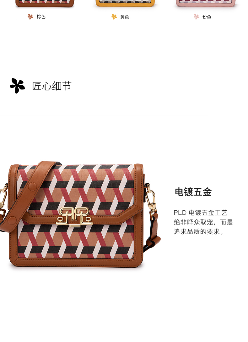 保兰德PLD东方雅奢经典系列45度老花信封包压纹链条单肩斜挎包原创小方包通勤中国包