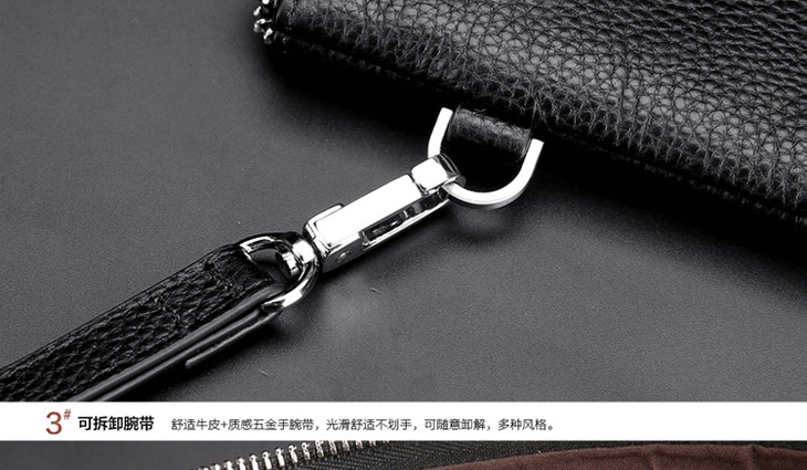 七匹狼男士手包 头层牛皮时尚潮流男包手拿包信封包1A1172102-01中号黑色