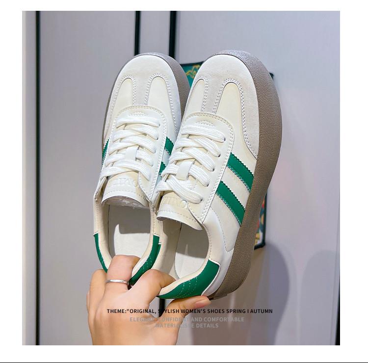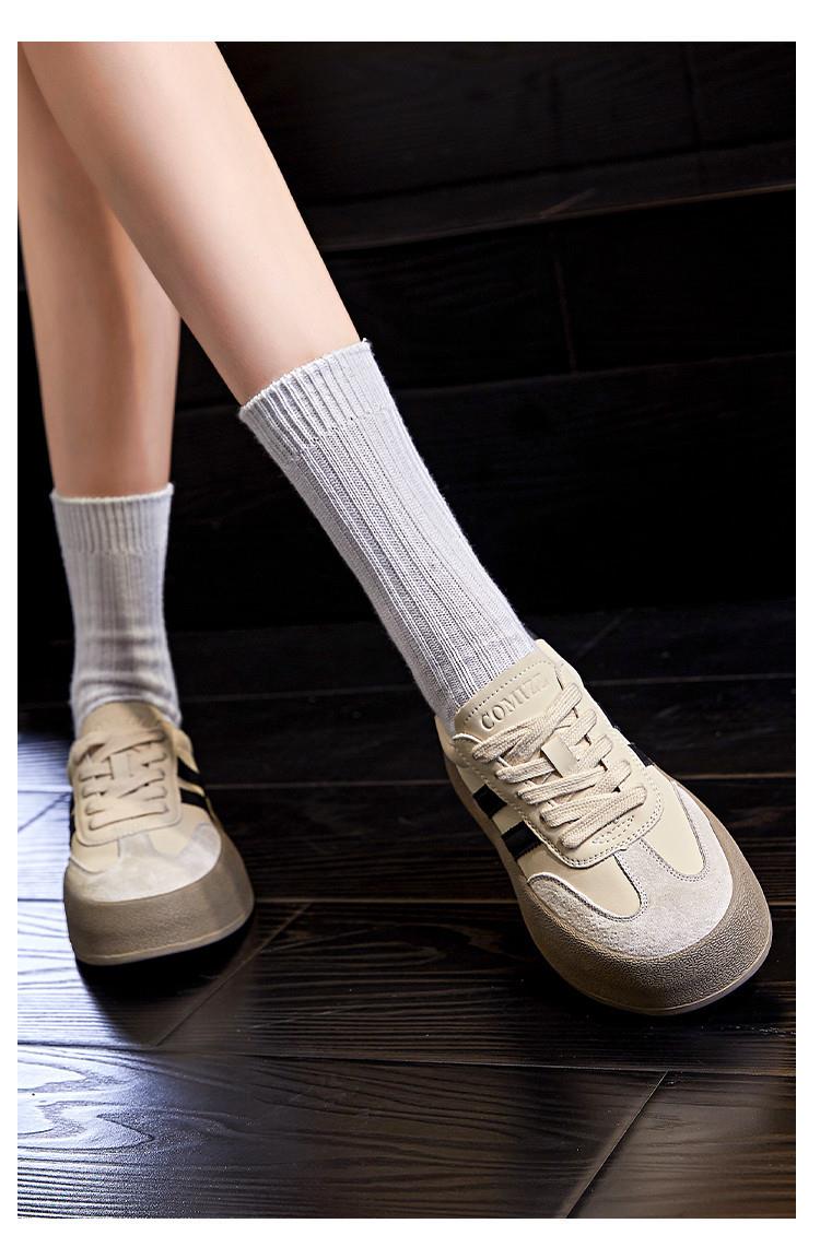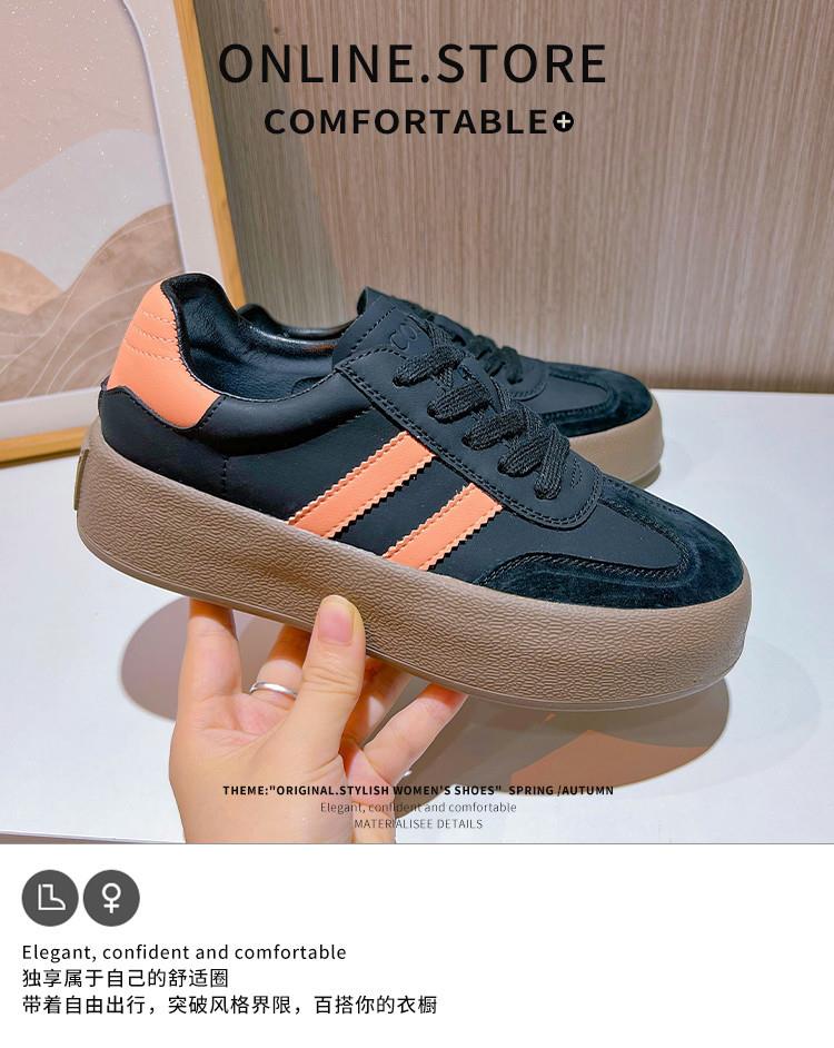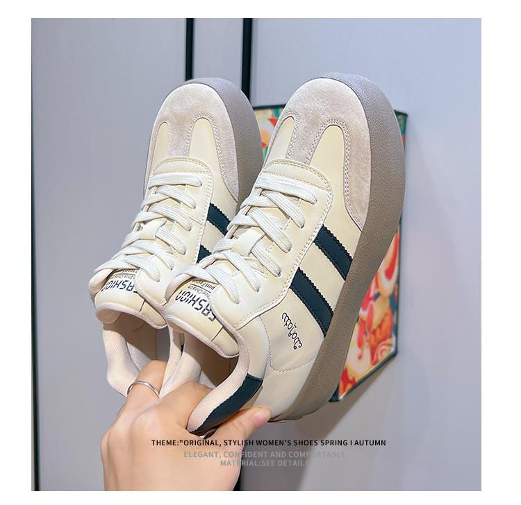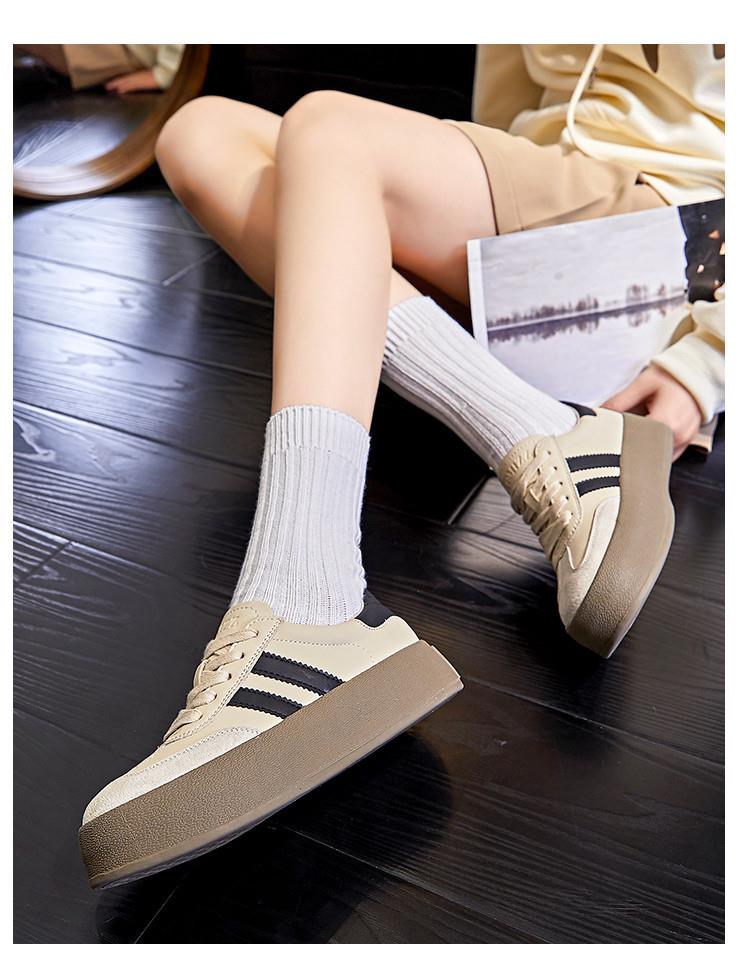 真皮德训鞋2024春夏新款女士厚底运动小白鞋女复古阿甘鞋休闲女鞋
