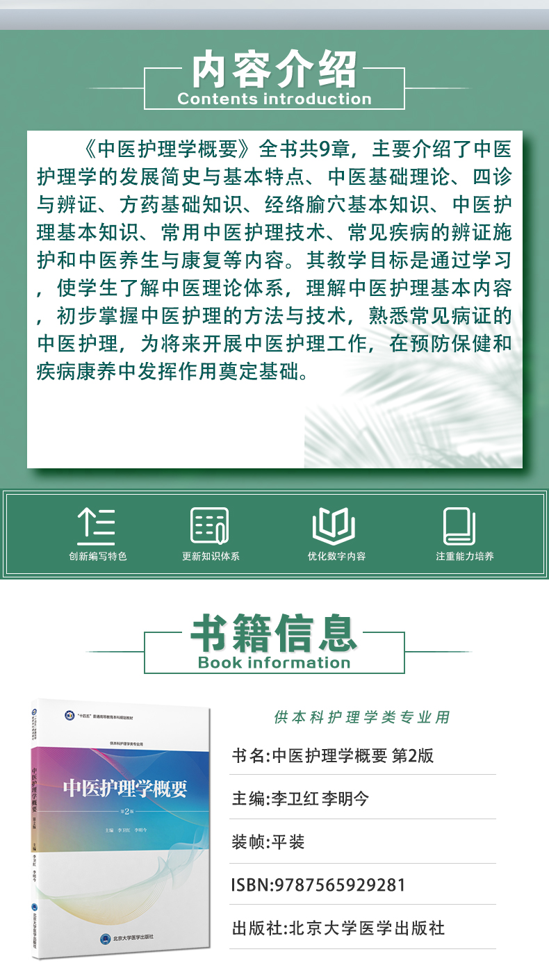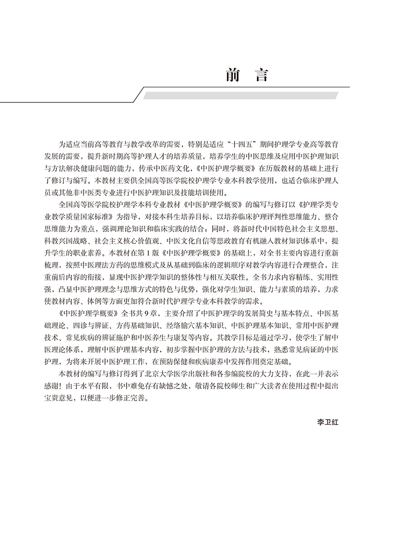 中医护理学概要 第2版 李卫红 李明今 十四五普通高能教育本科规划教材 供本科护理学类专业用 北京大学医学出版社9787565929281