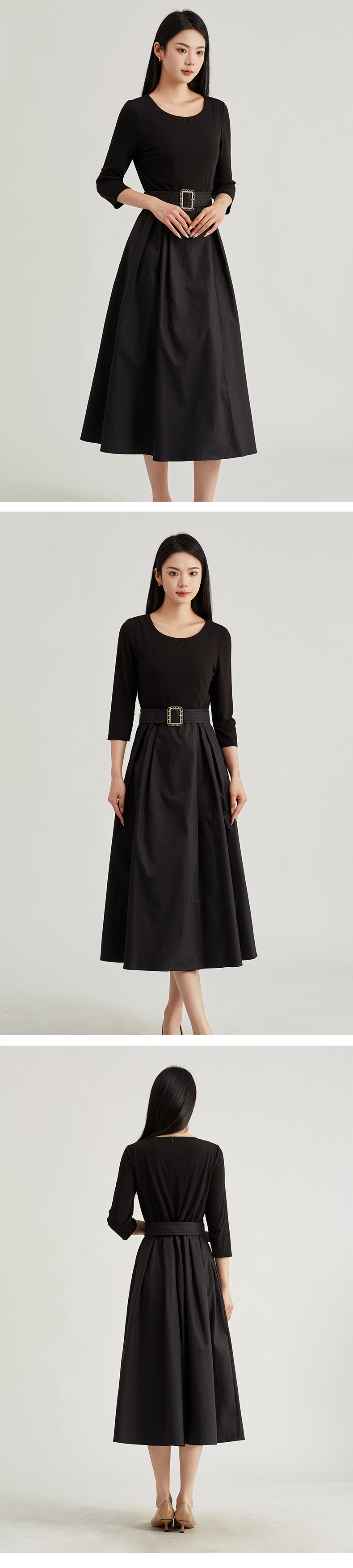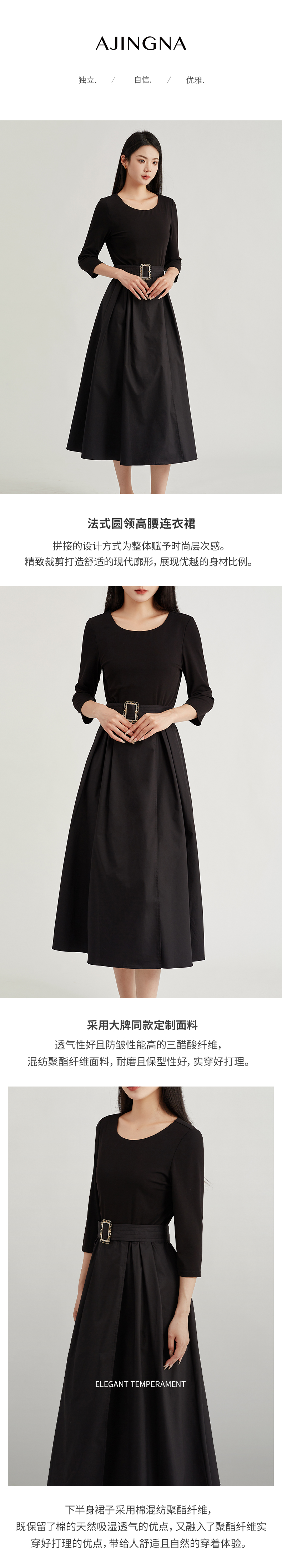 【积分兑换】阿菁娜法式圆领高腰拼接设计连衣裙A28Q112027