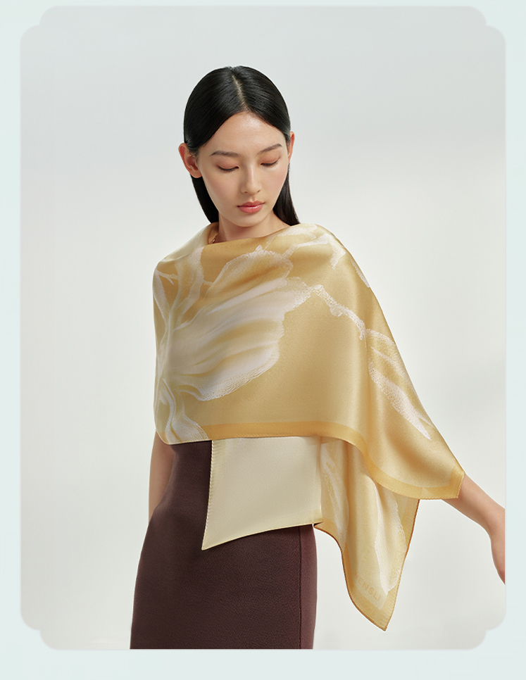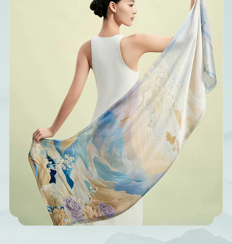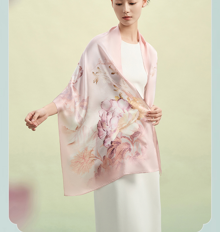 万事利“牡丹时”75厘米双面印花中方巾