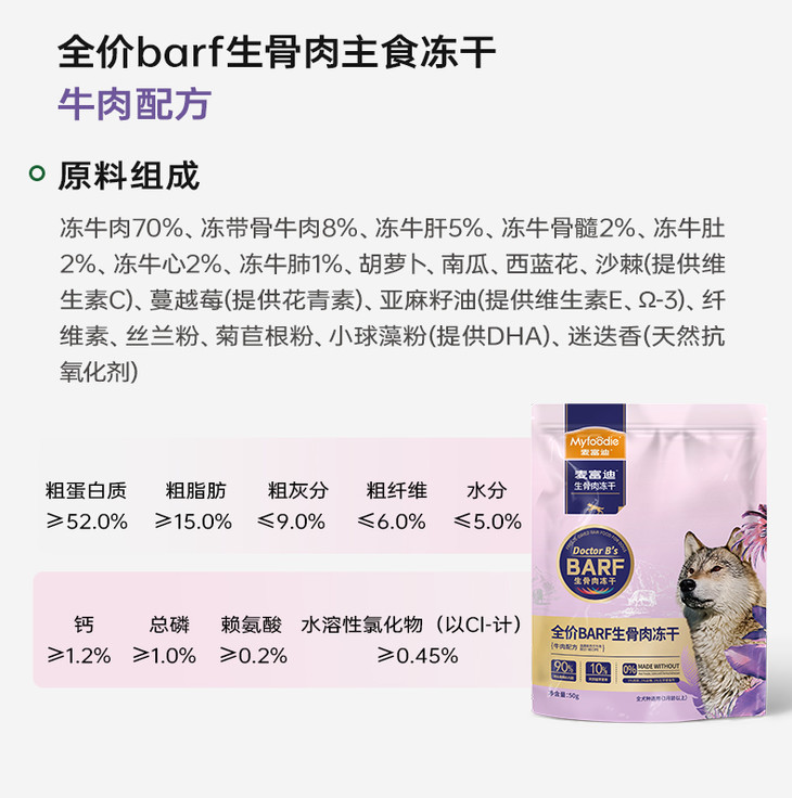麦富迪barf冻干生骨肉主食犬用冻干狗狗零食50g