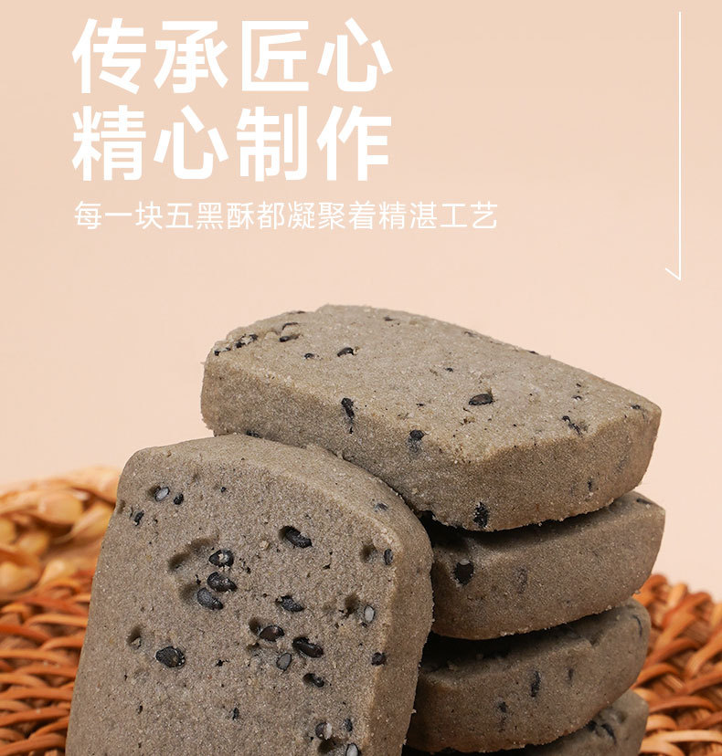 【9.9抢10包❗无添蔗糖五黑酥饼干】传统手工匠心制作,每一块五黑酥都凝聚着精湛工艺,黑米/黑芝麻/黑豆/黑枸杞/黑藜麦,五黑食材完美融合,早餐代餐下午茶休闲小吃零食糕点L