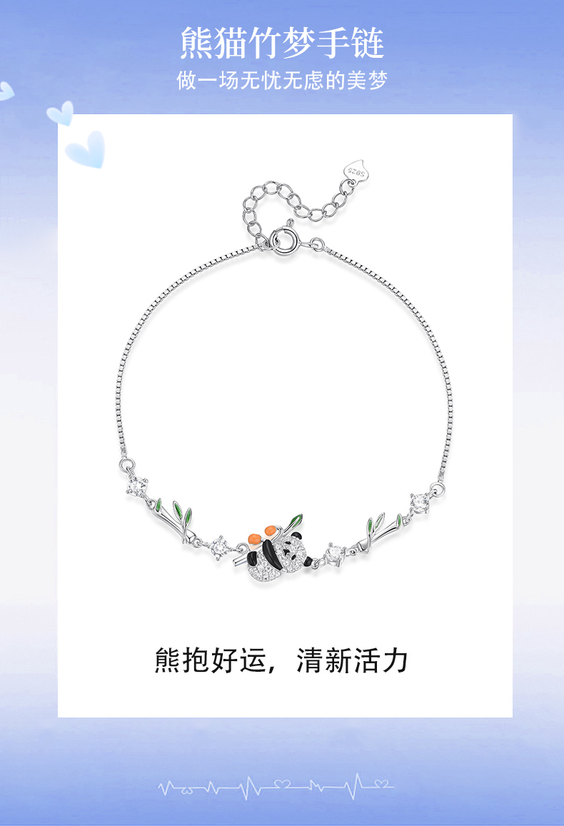 卡蒂罗KADER 熊猫竹梦手链 新中式可爱活泼熊猫小众百搭高级感竹节中国风可调节拼接链 俏皮可爱点亮穿搭