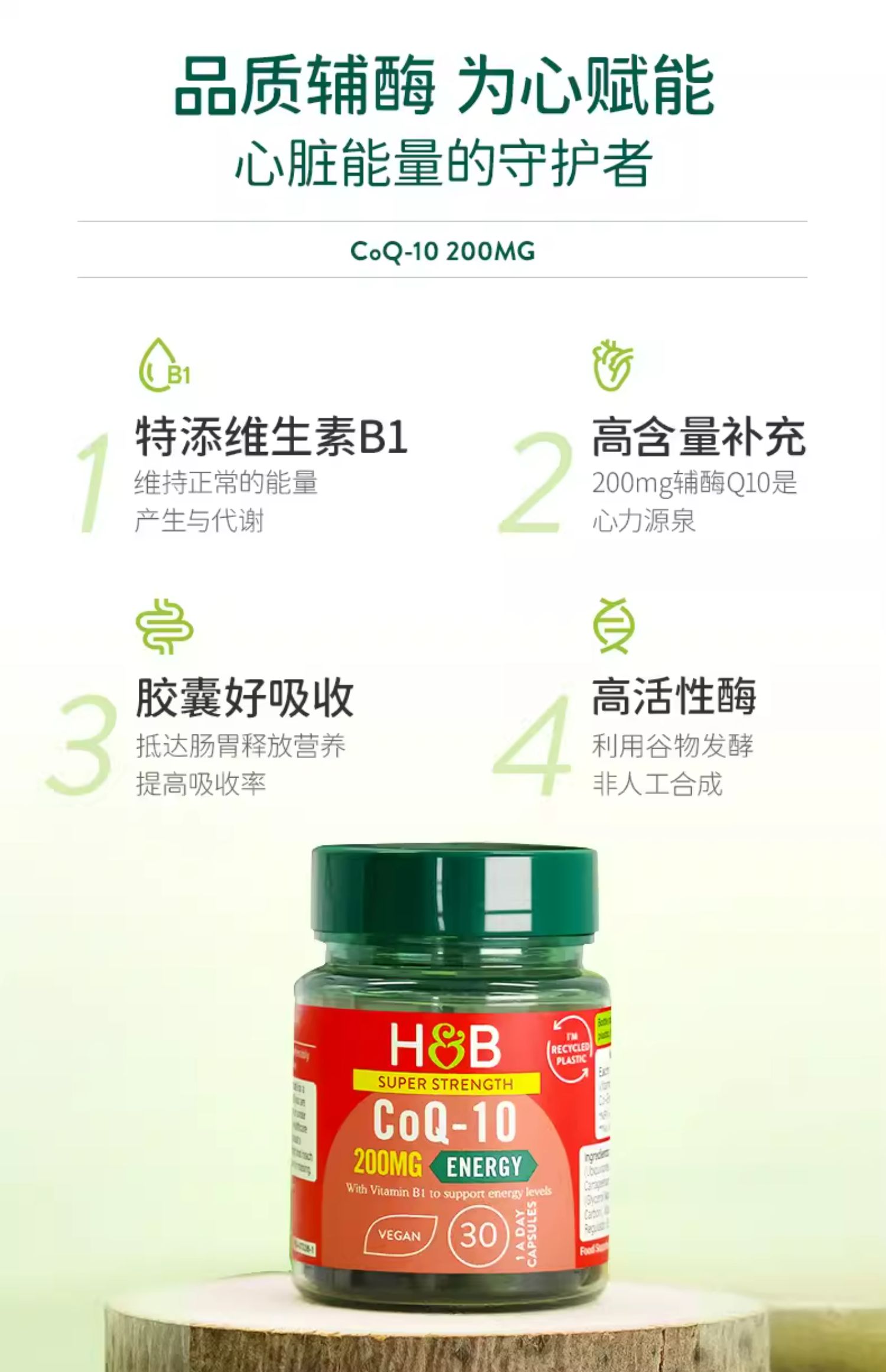 【同步英国专gui最新包装】英国H&B 双倍含量辅Q10 200mg30粒 焕活心动力