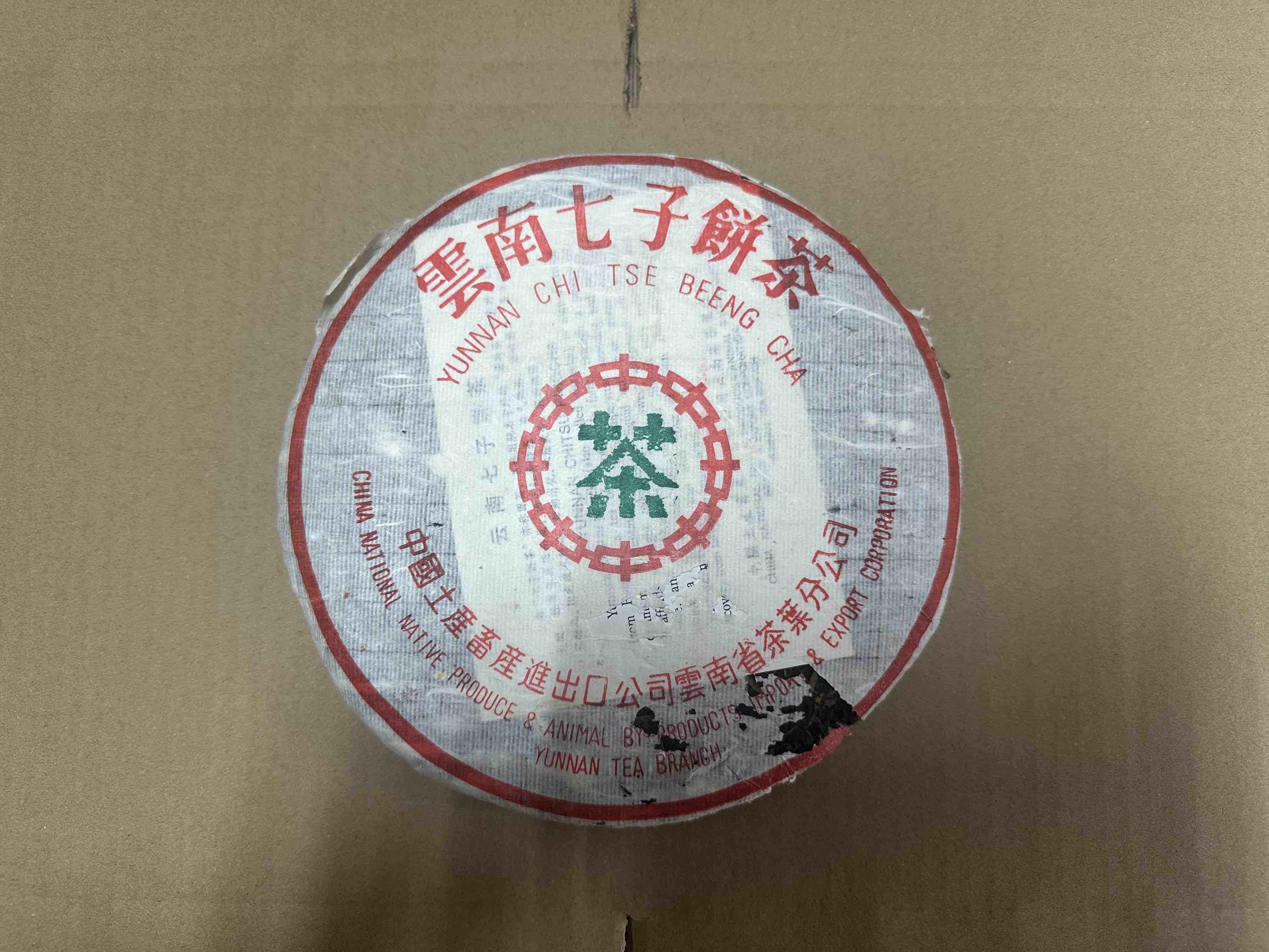 【仅余7片,老客户福利价:599元一片】90年代云南普洱茶中茶绿印繁体云七子饼勐海古树老生茶饼357g