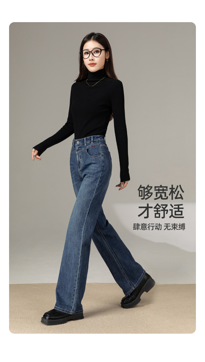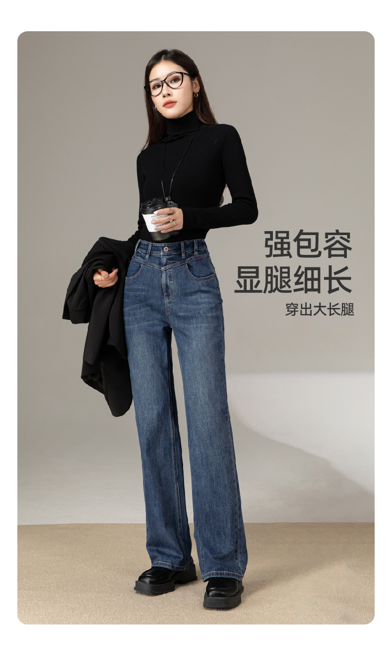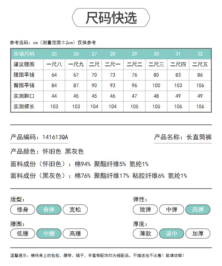 【秋新品-窄版长直筒】逸阳棉弹窄版长直筒宽松显瘦牛仔裤子1613