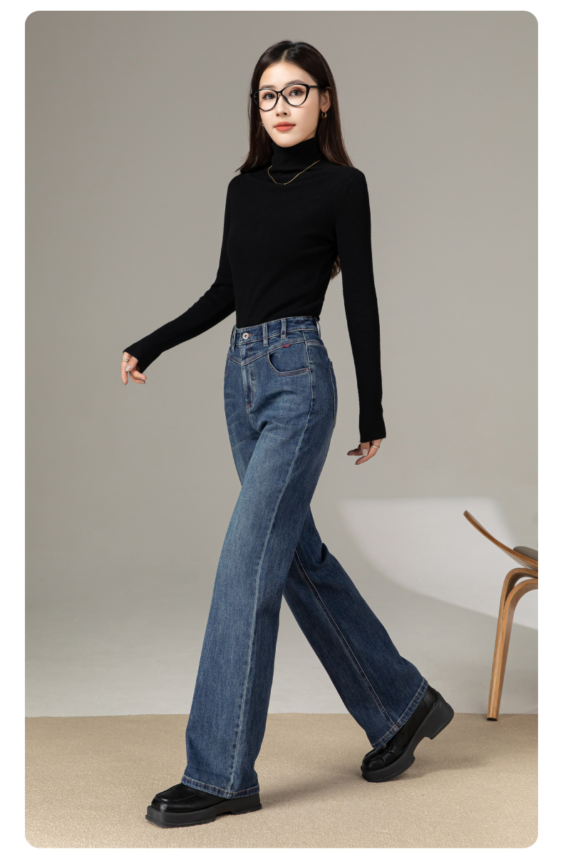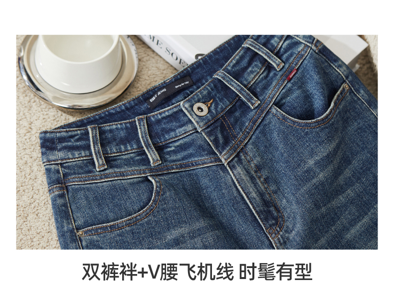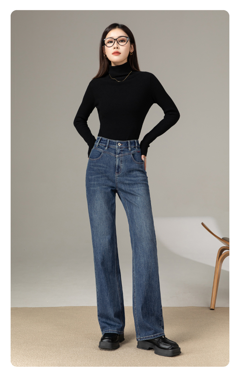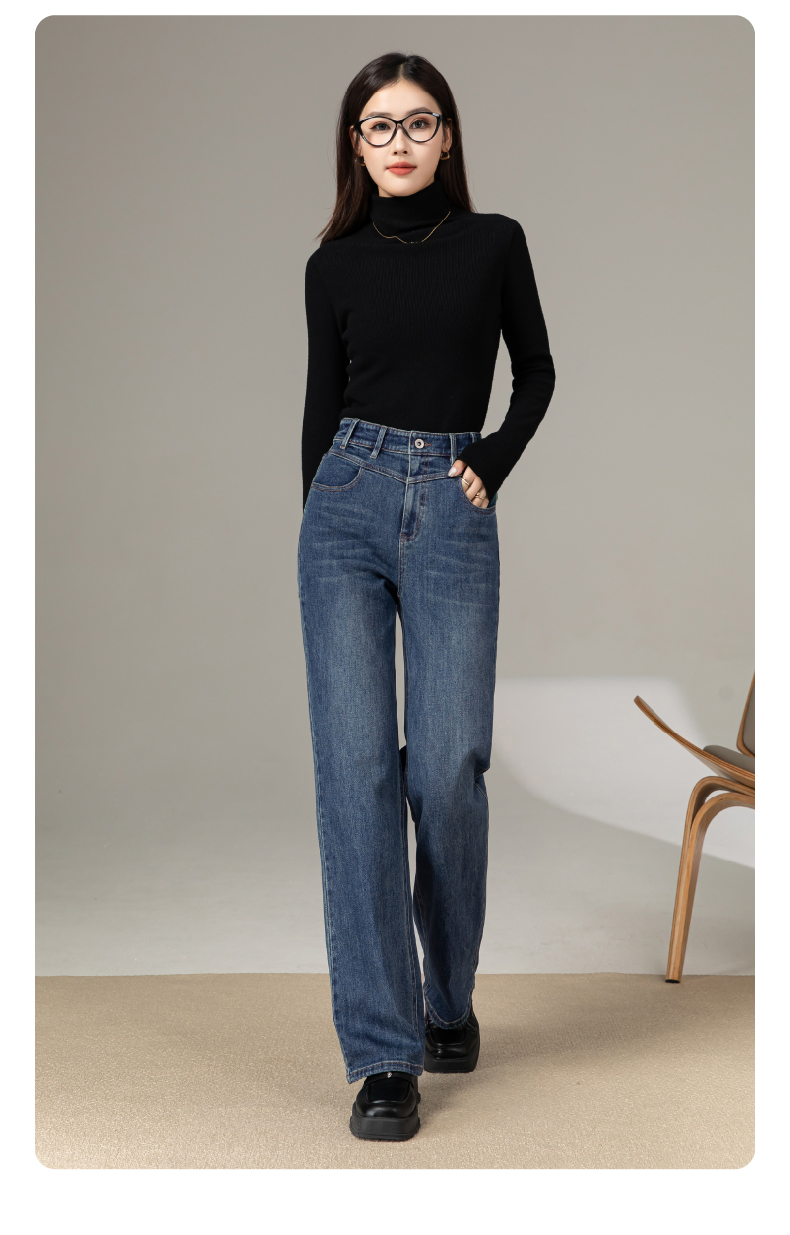 【秋新品-窄版长直筒】逸阳棉弹窄版长直筒宽松显瘦牛仔裤子1613