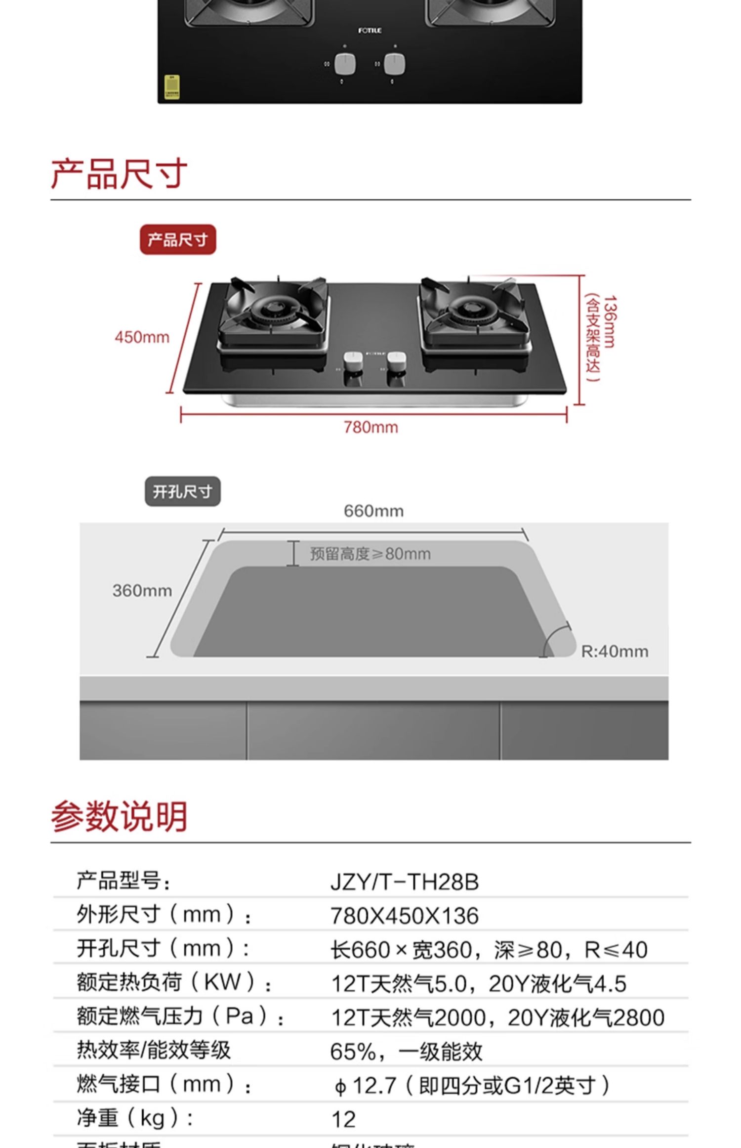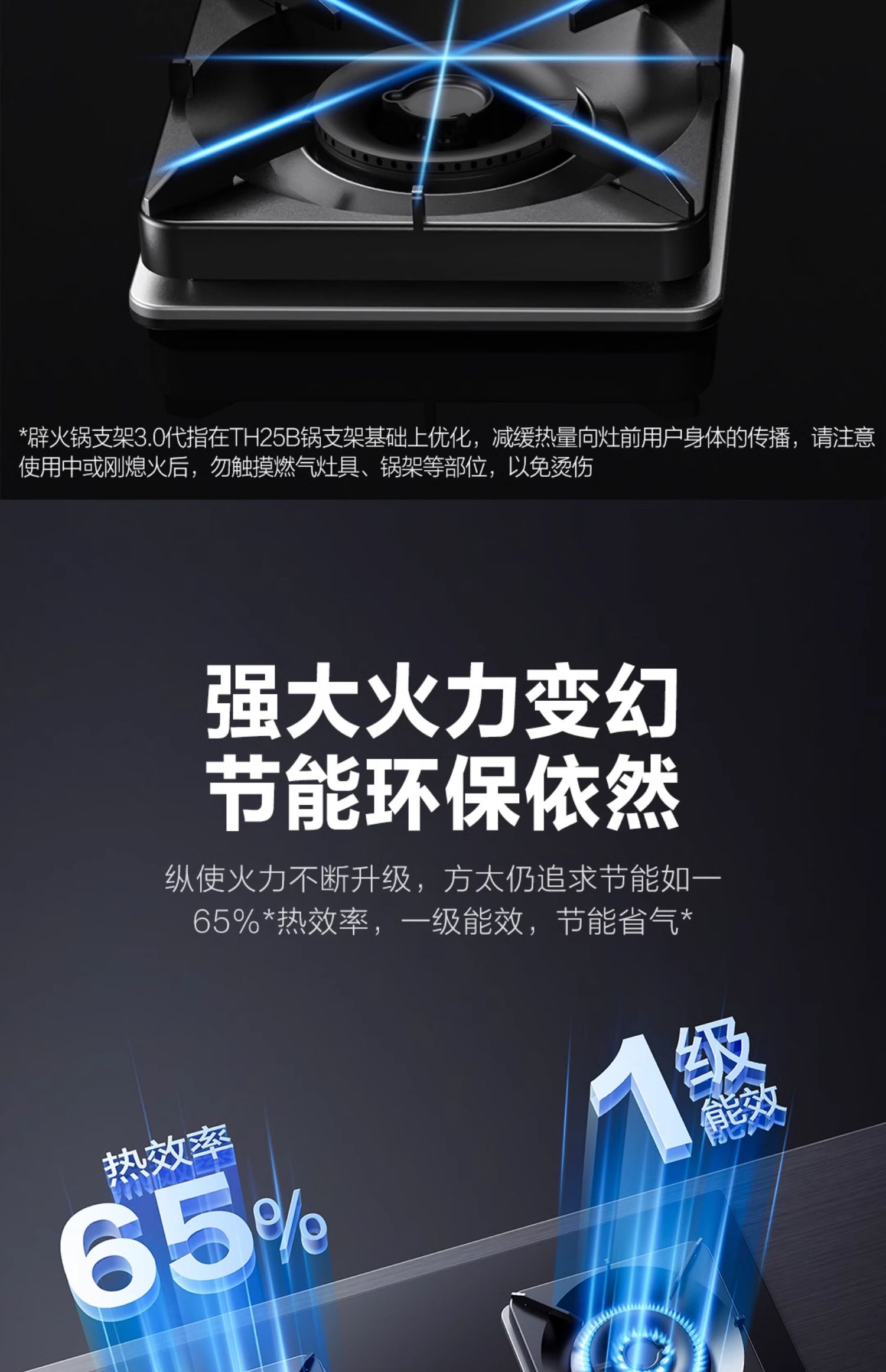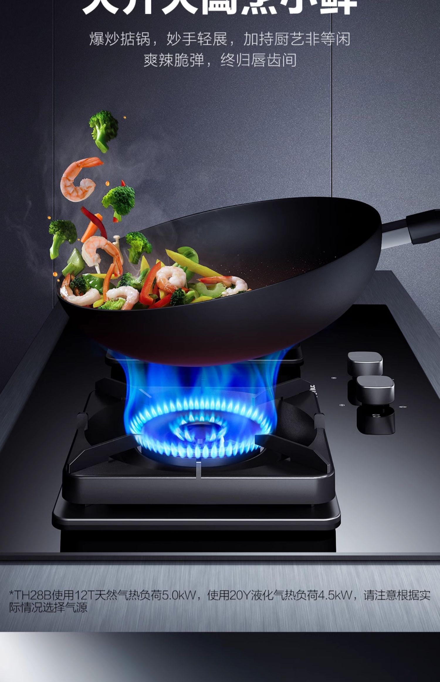 方太TH28B燃气灶台嵌两用5.0KW猛火灶 家用换装可调节底盘免扩孔天然气液化气煤气灶双灶五重防爆面板官方正品