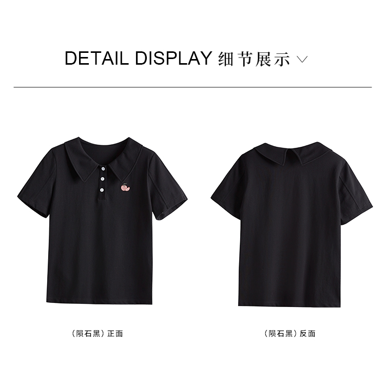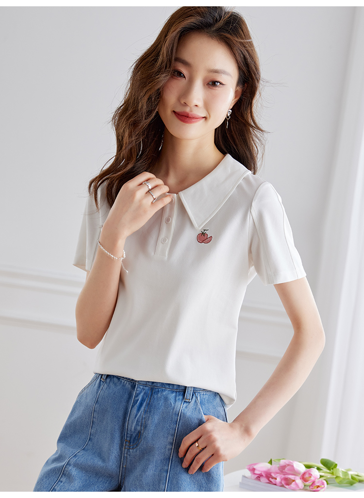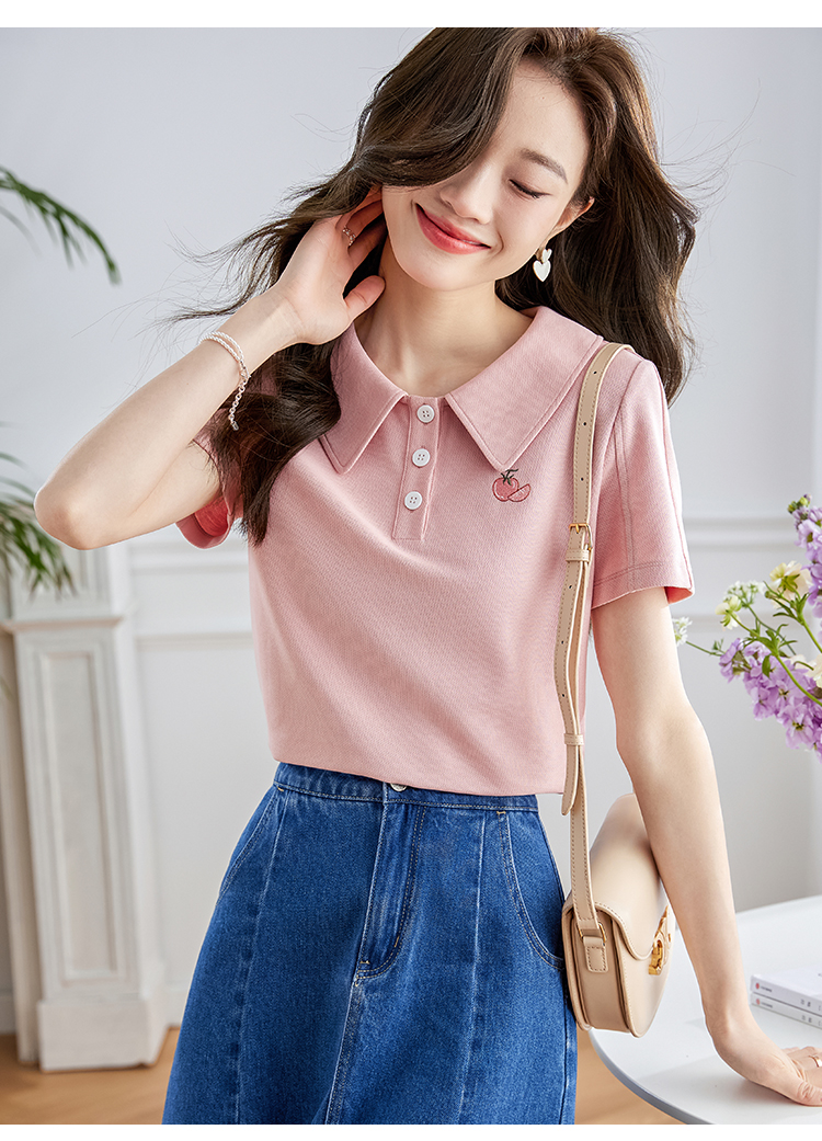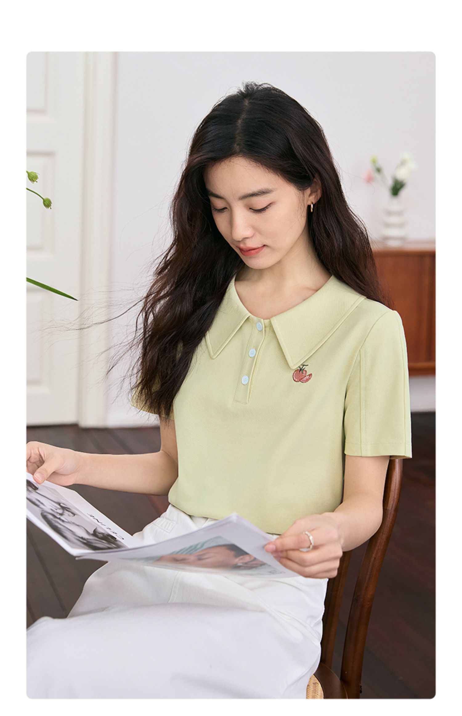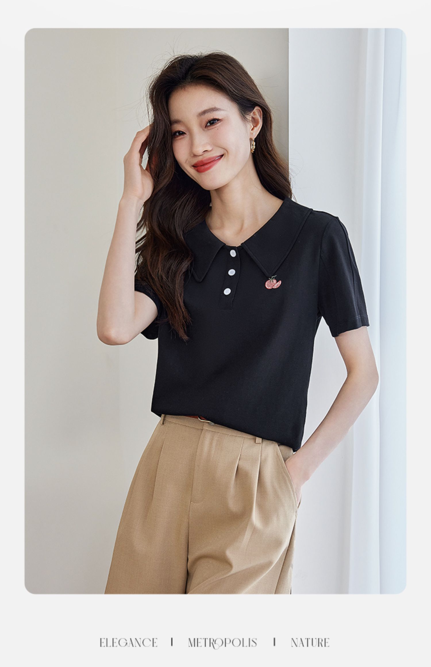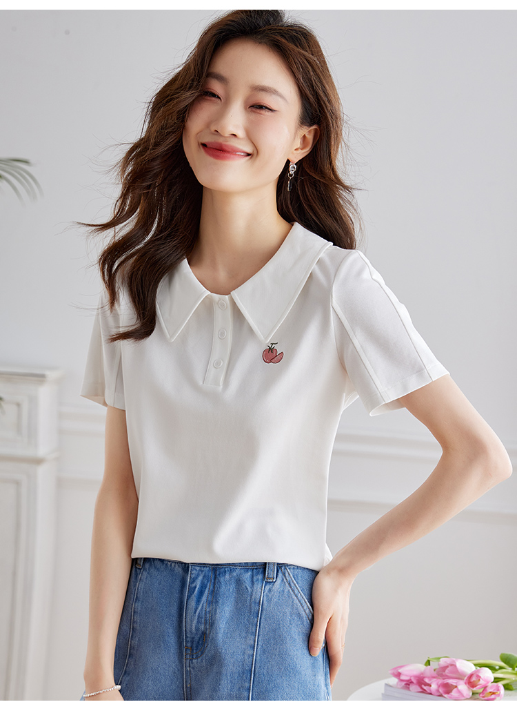 【专属特价】熙世界法式polo领正肩T恤夏2025新款甜美刺绣宽松显瘦短袖上衣