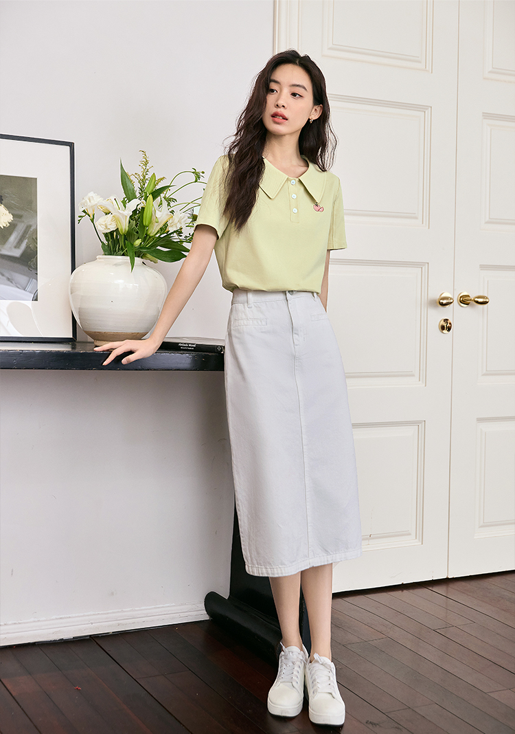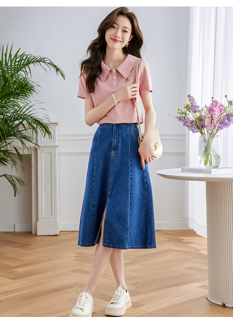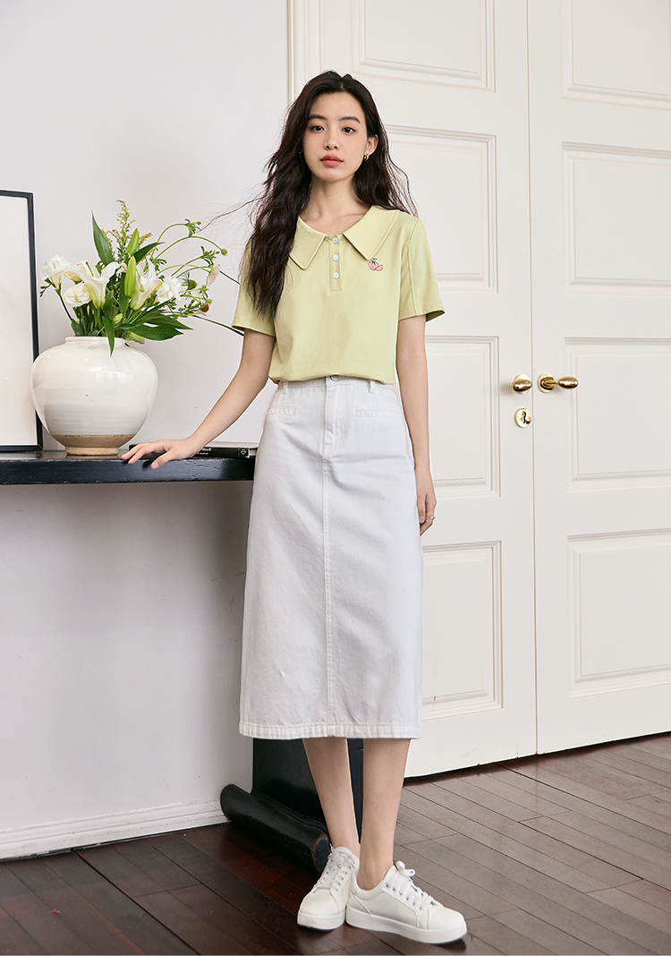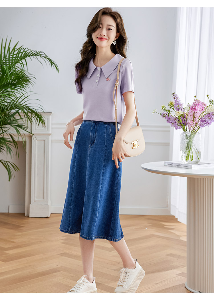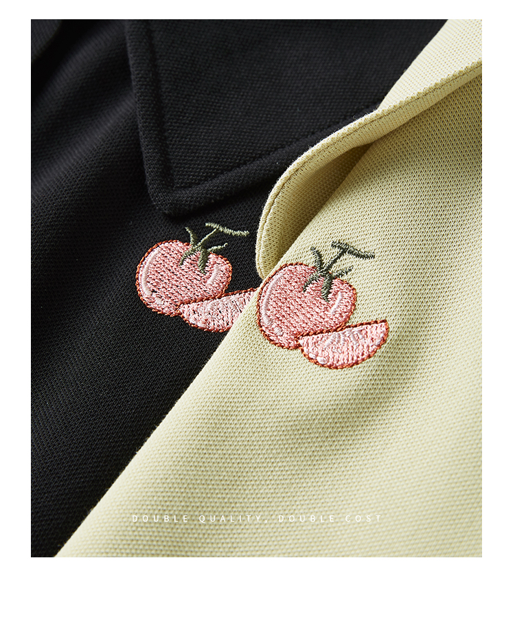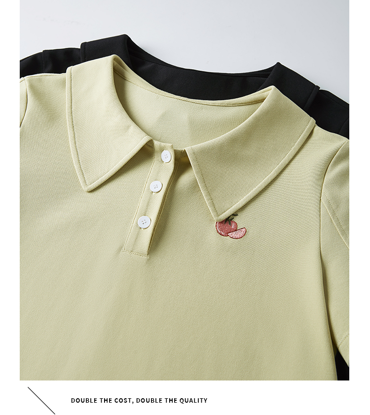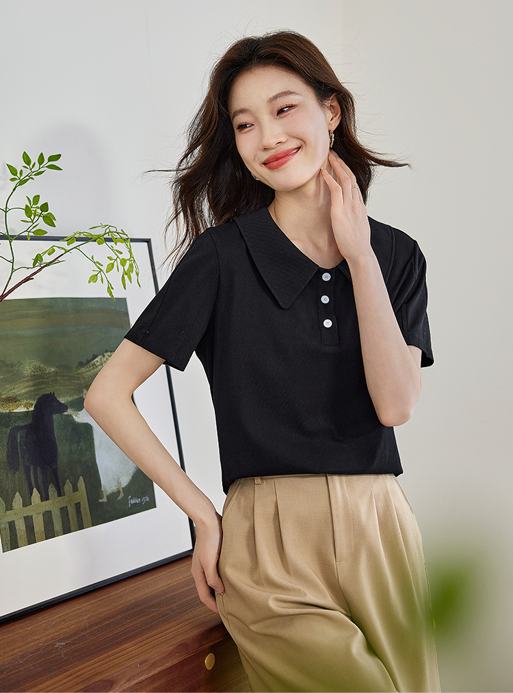 【专属特价】熙世界法式polo领正肩T恤夏2025新款甜美刺绣宽松显瘦短袖上衣