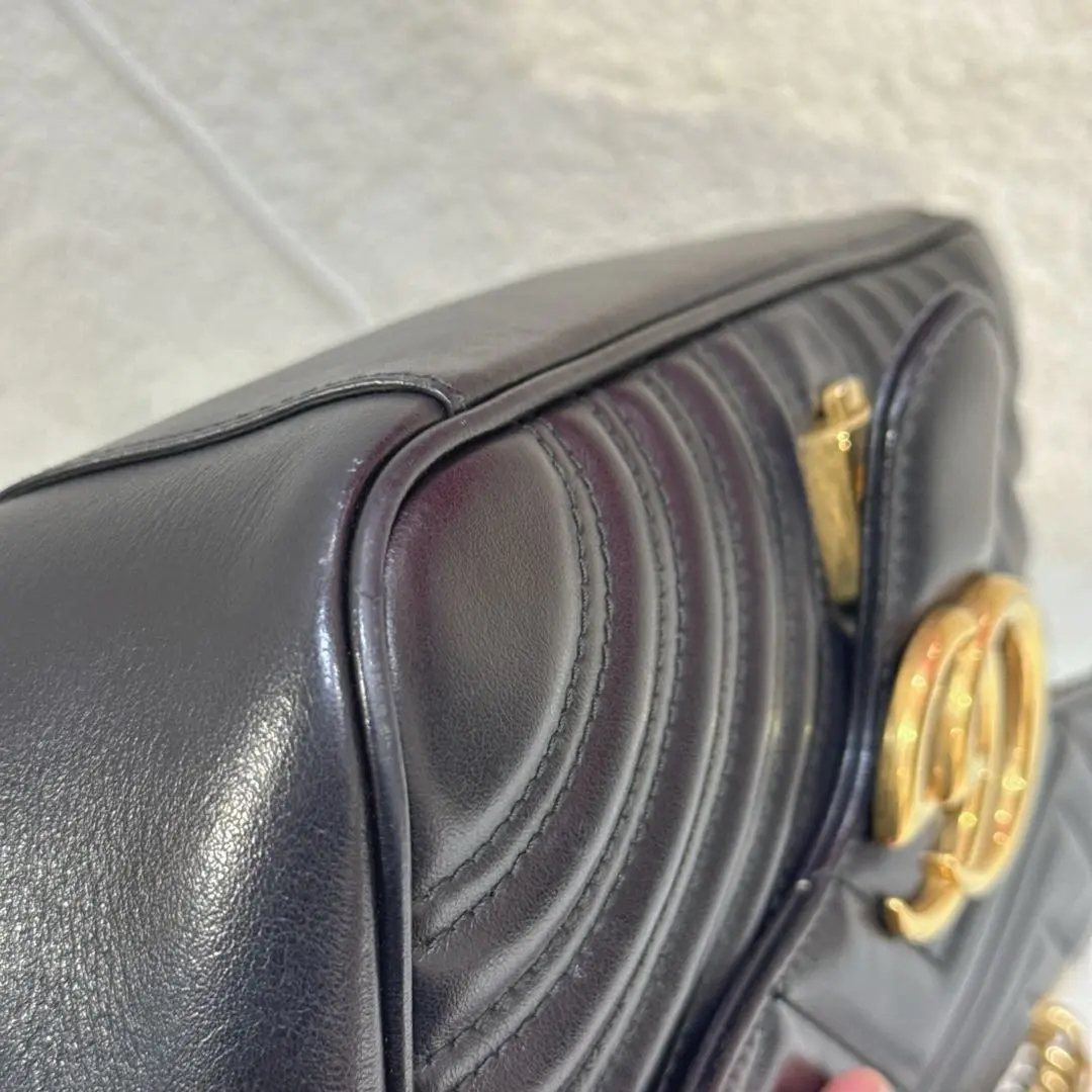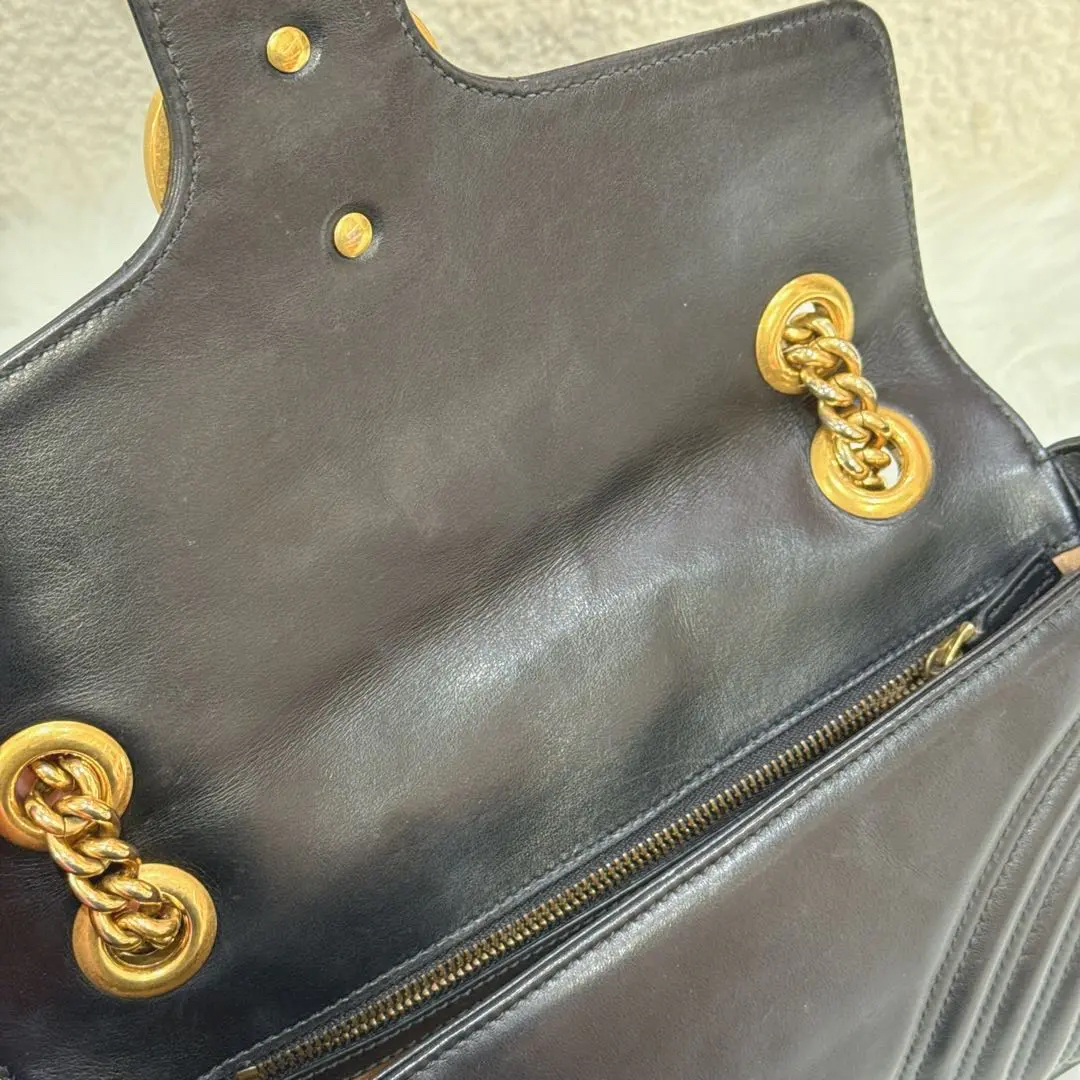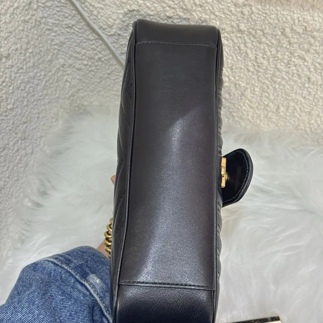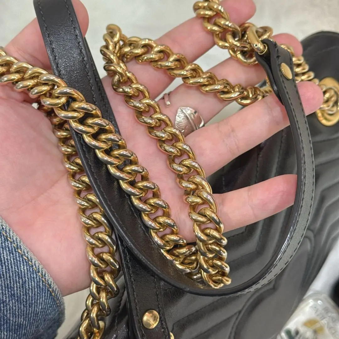 【商品详情】正品二手 Gucci 双g 马蒙 中号 牛皮 黑金 斜挎包😑95新 26×15。边角正常使用磨擦感。百搭经典款