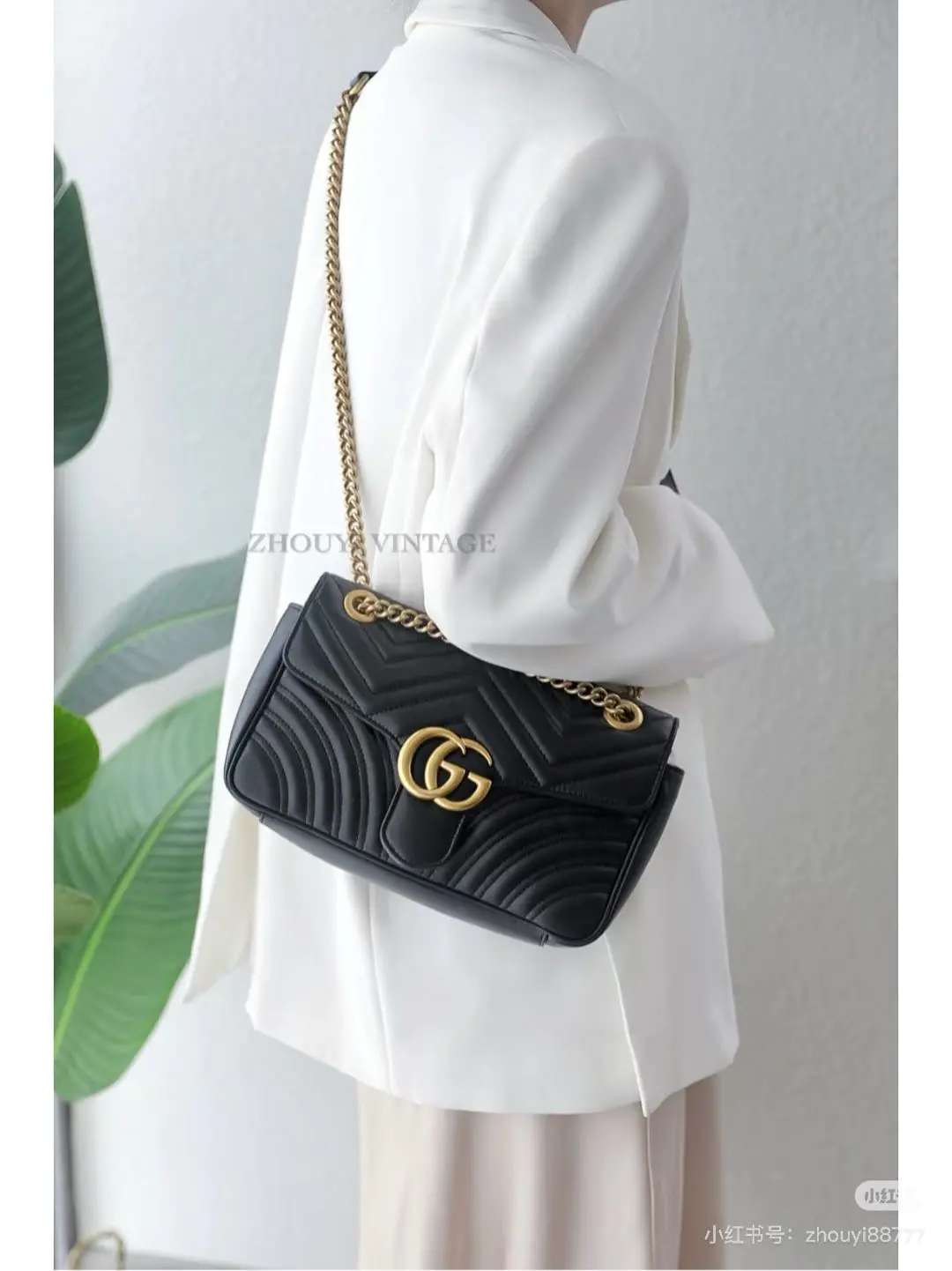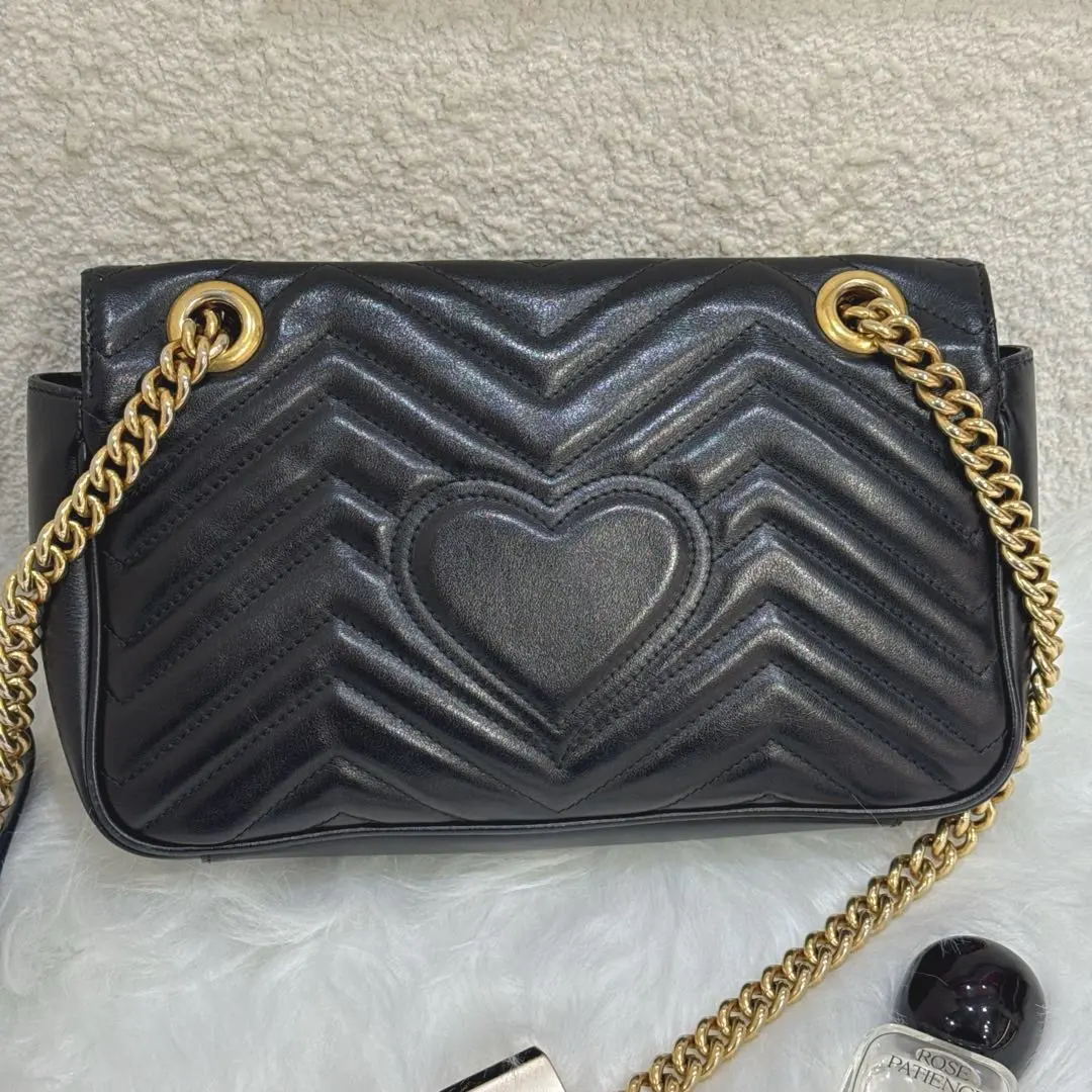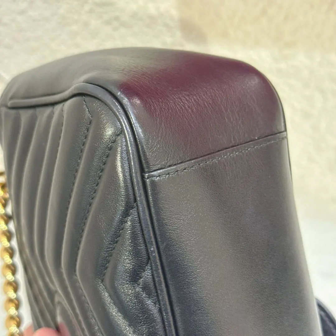 【商品详情】正品二手 Gucci 双g 马蒙 中号 牛皮 黑金 斜挎包😑95新 26×15。边角正常使用磨擦感。百搭经典款