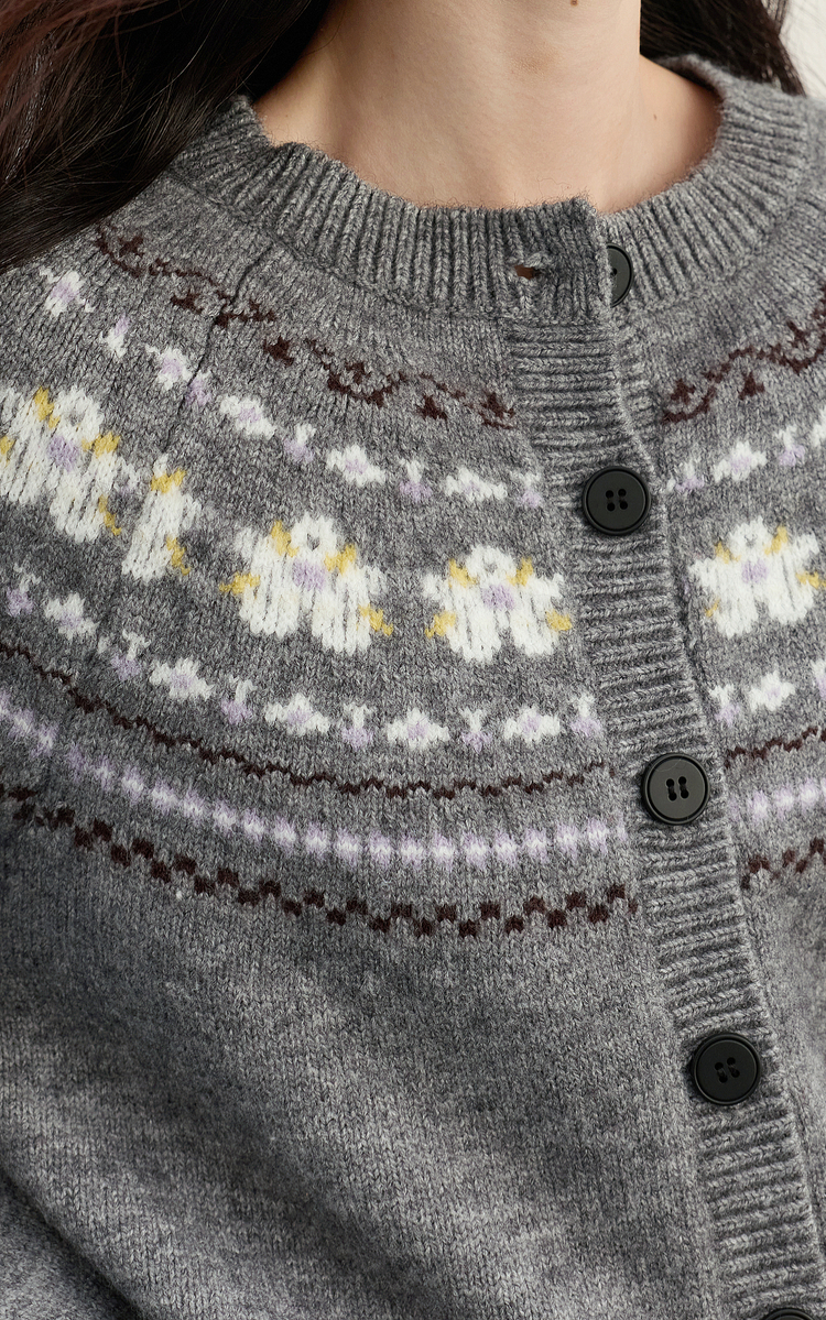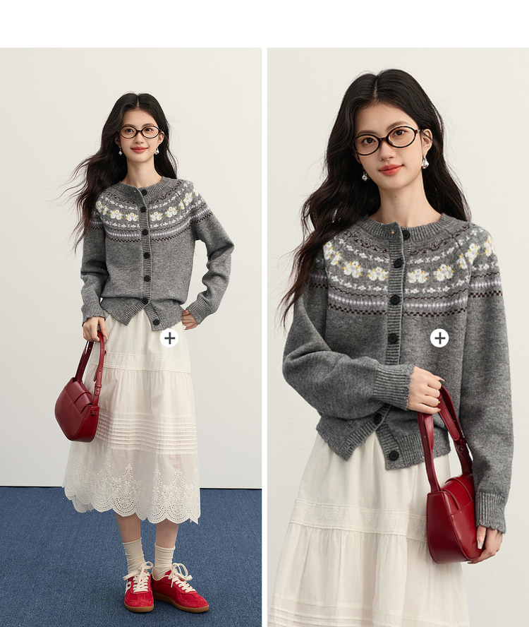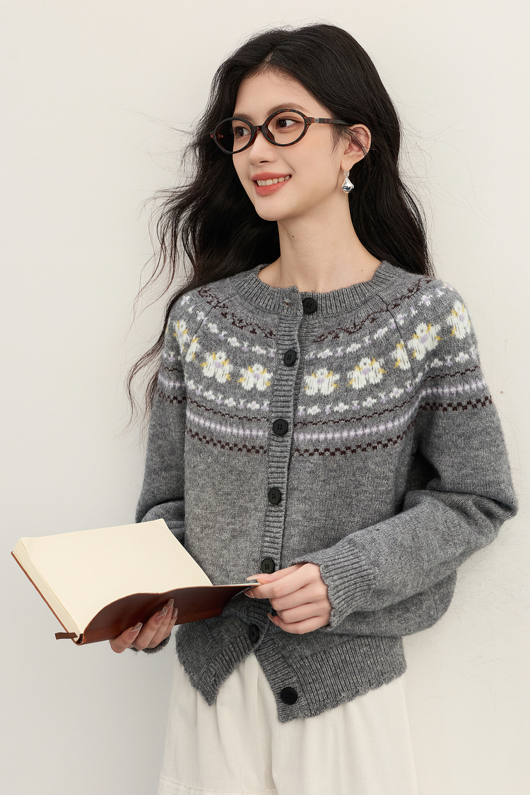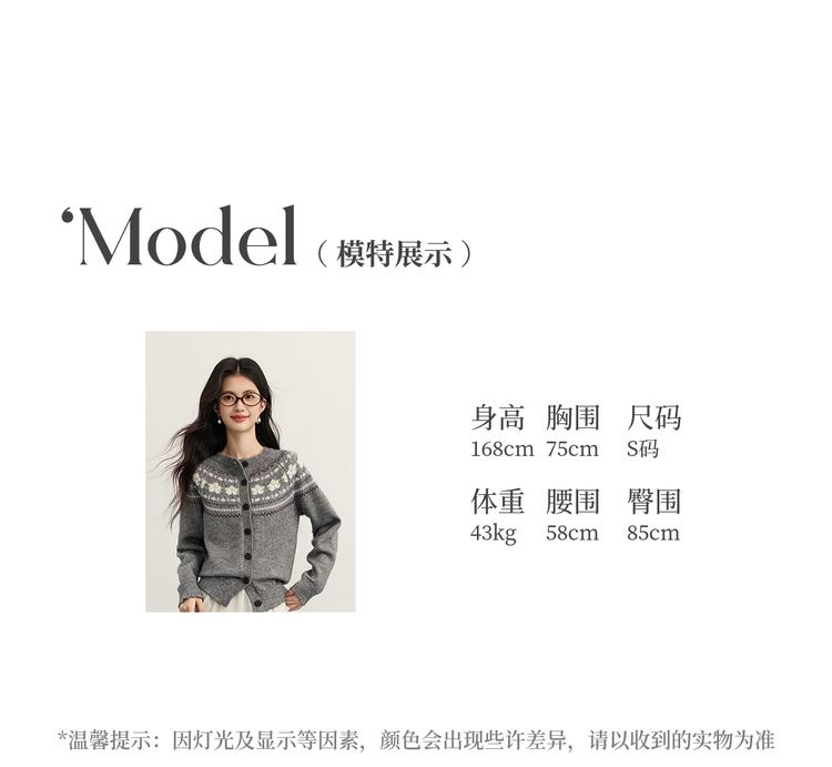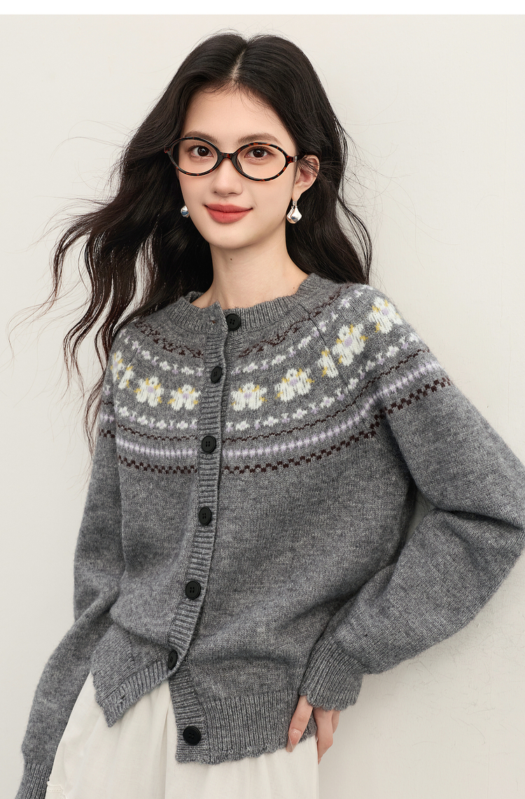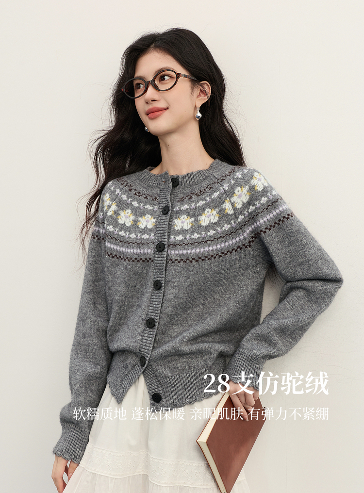 【11/5新品限时6.5折】熙世界「静奢仿驼绒」北欧风费尔岛圆领针织毛衣开衫女2025秋冬款