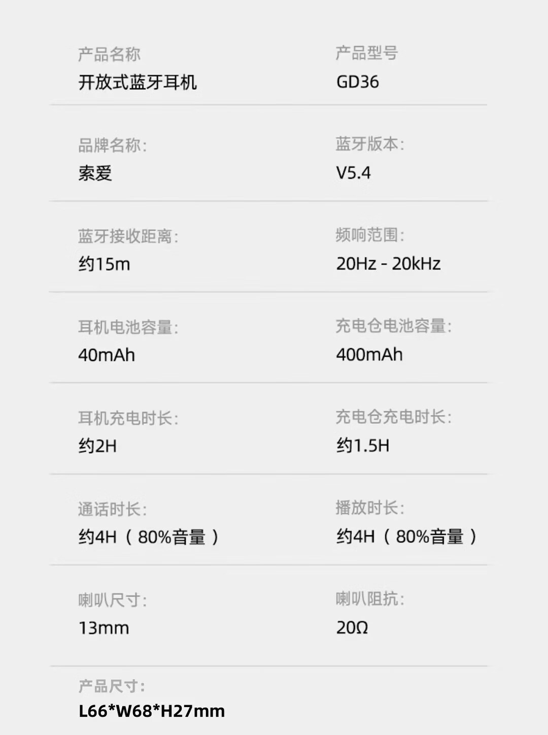索爱 气传导蓝牙耳机 GD36