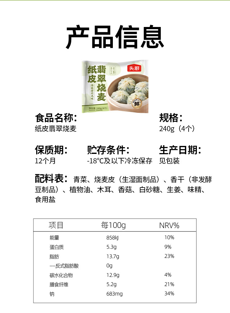 纸皮翡翠烧麦*1袋装(240G/4只/袋)
