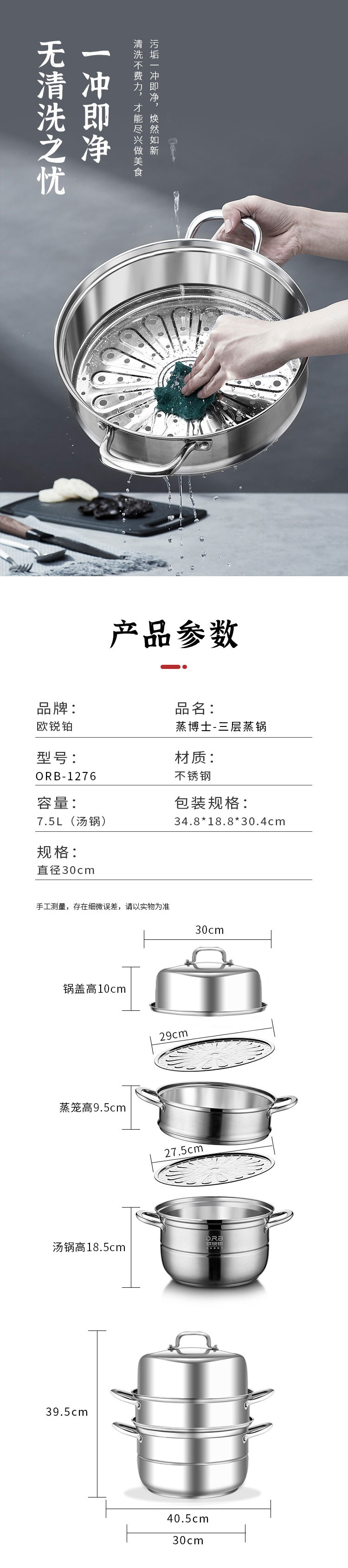 欧锐铂蒸博士-三层蒸锅ORB-1276