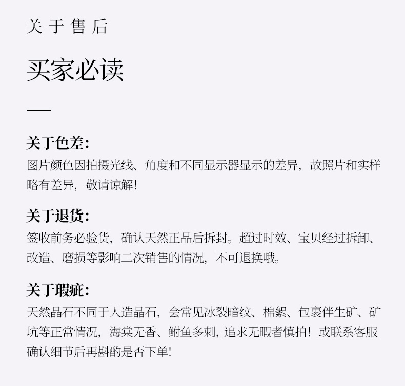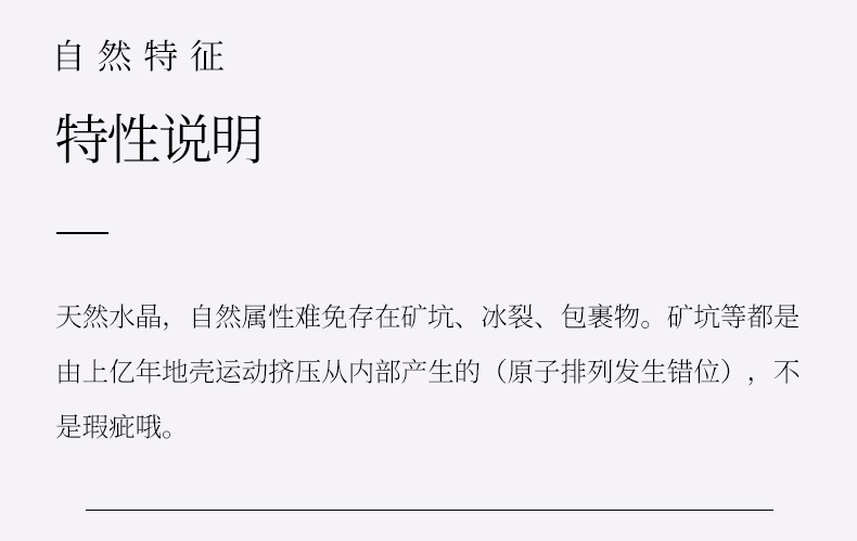 【注意事项】天然水晶,自然属性难免存在矿坑、冰裂、包裹物。矿坑等都是由上亿年地壳运动挤压从内部产生的(原子排列发生错位),该情况并非产品瑕疵。
