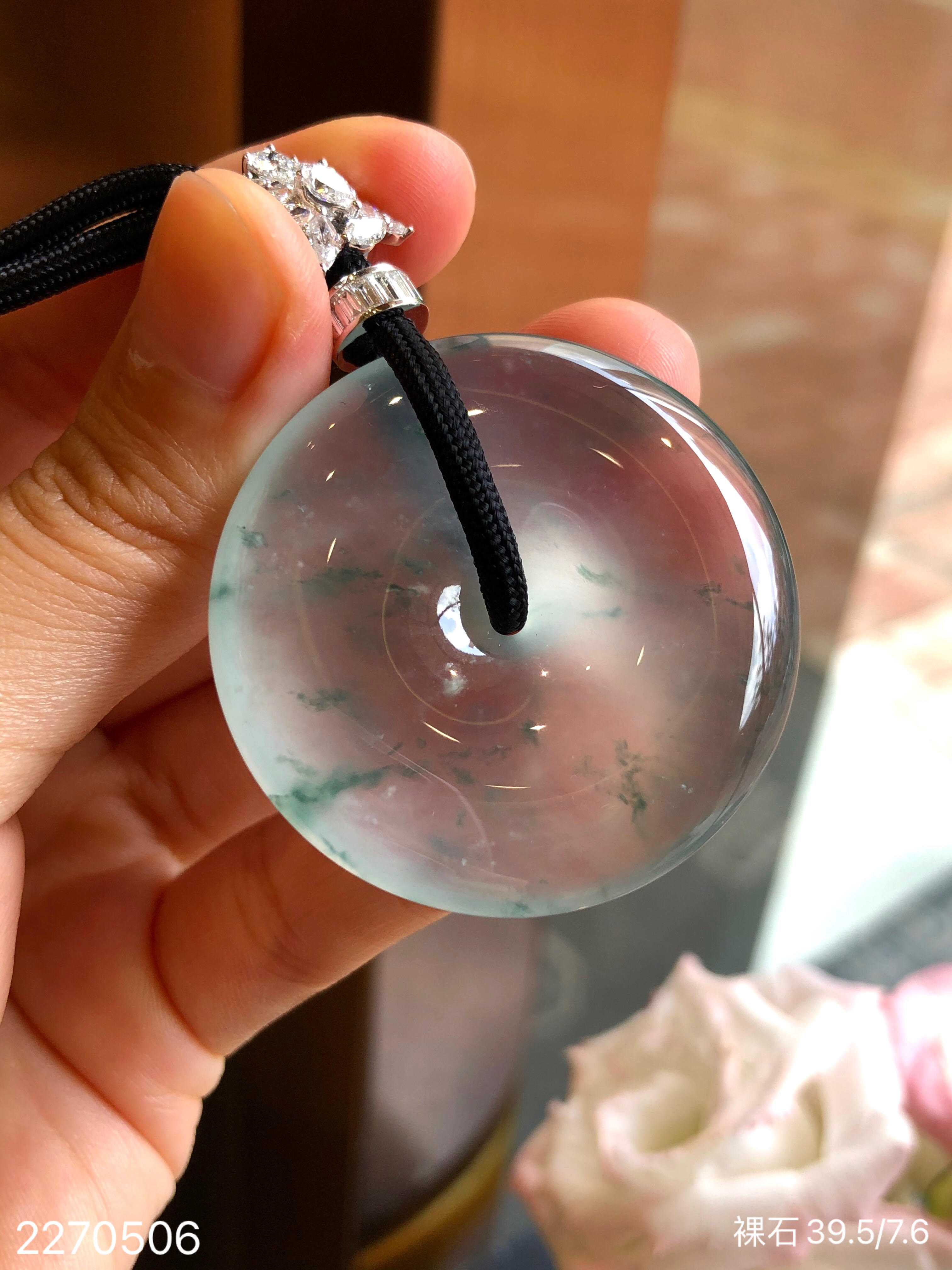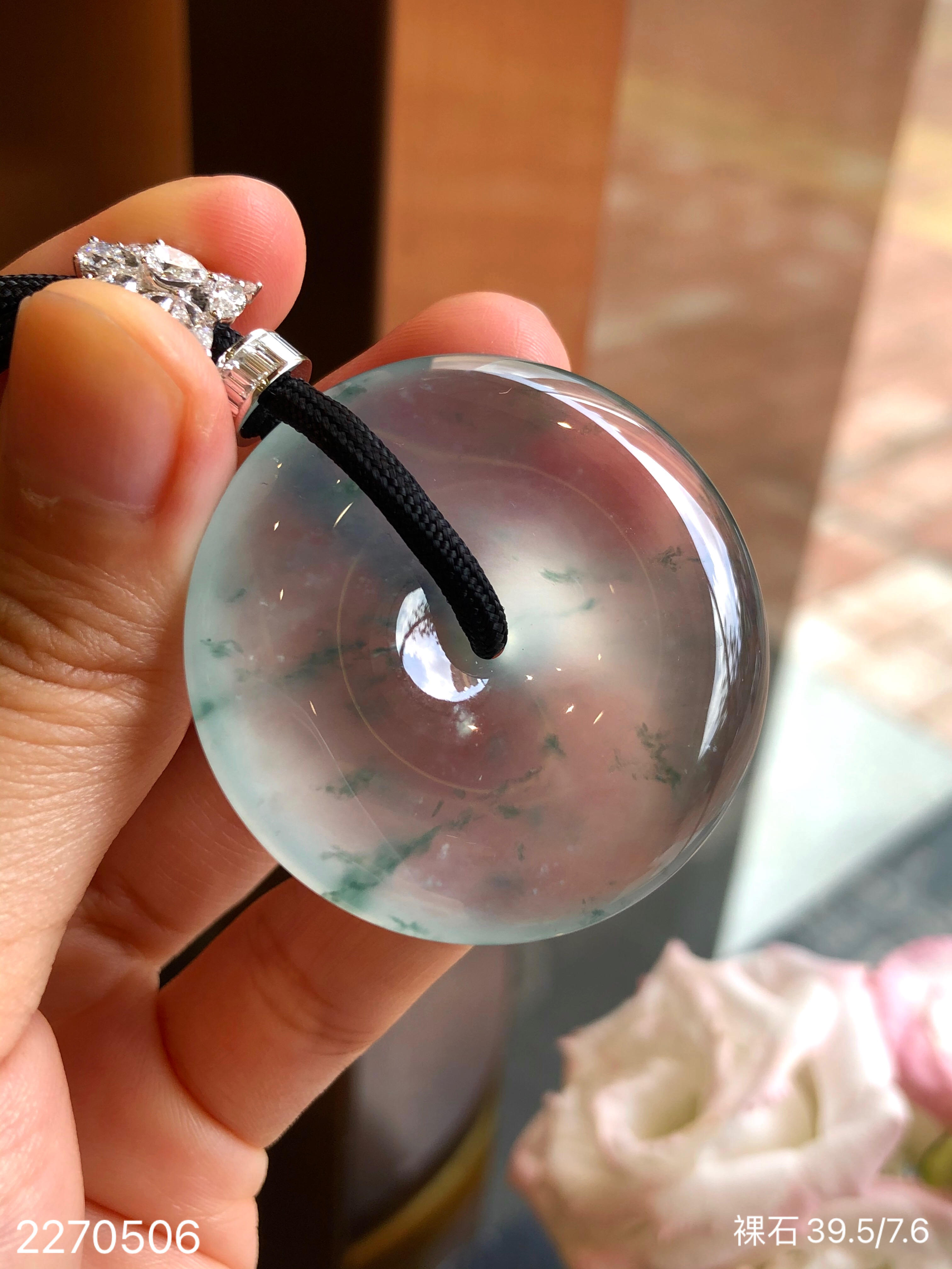 2270506,高冰近玻璃飘翠平安扣裸石,具体价格微信咨询