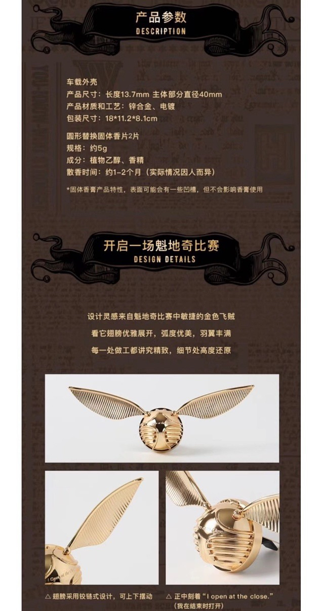 野兽派哈里波特联名款 金色飞贼车载香薰 金灿灿的好好看 哈迷必入系列