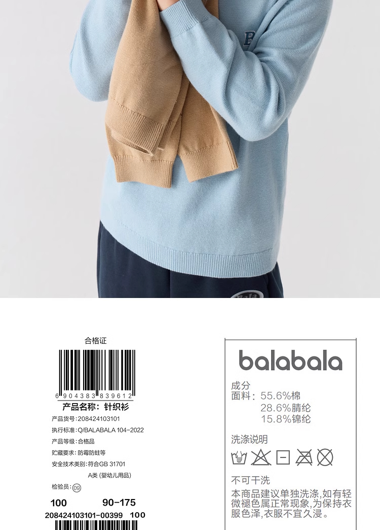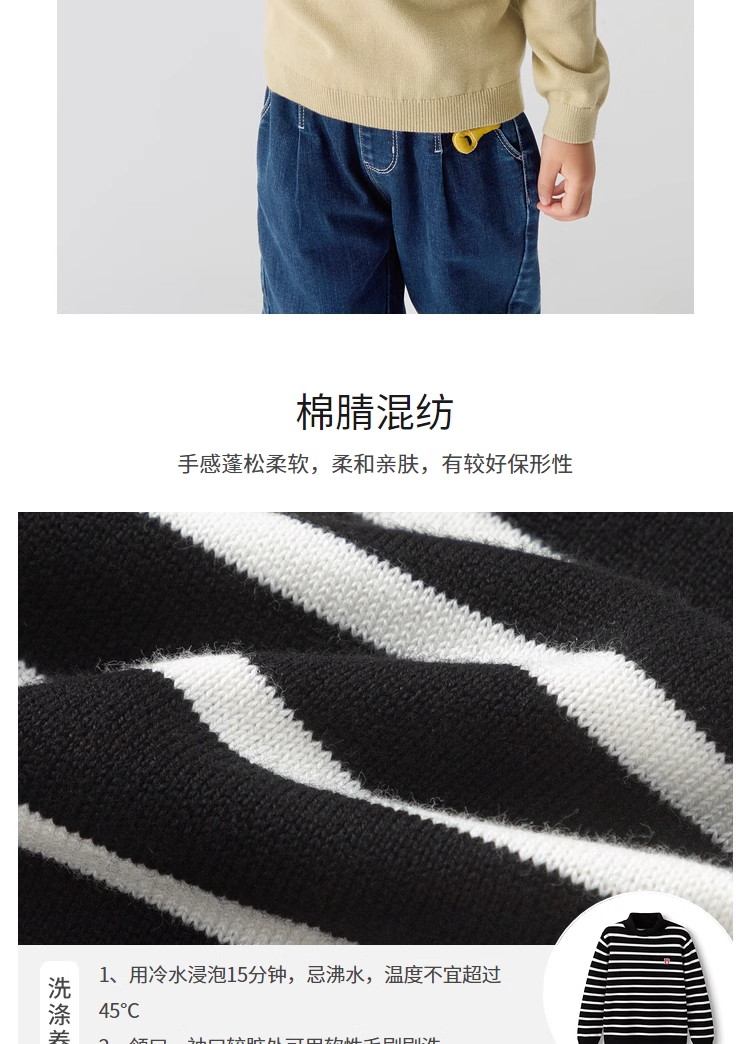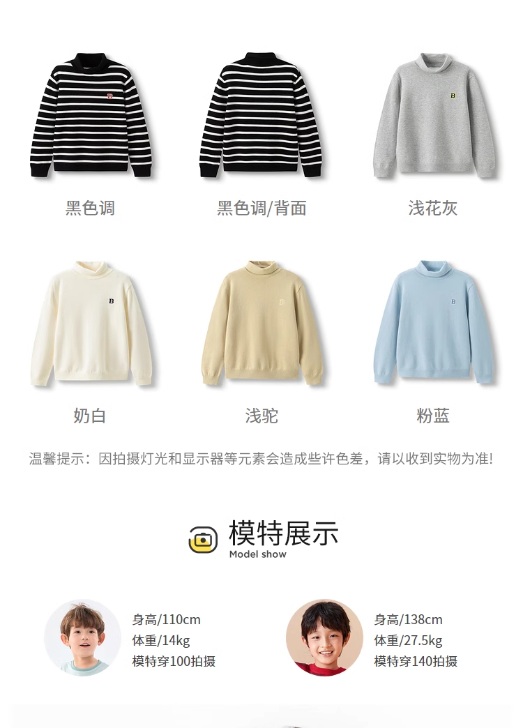 巴拉巴拉童装儿童中高领毛衣秋冬新款小大童套头男女童针织衫【巴拉巴拉专场】