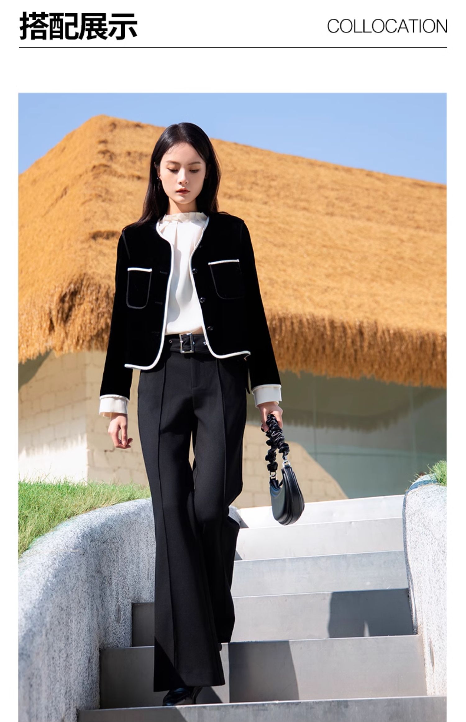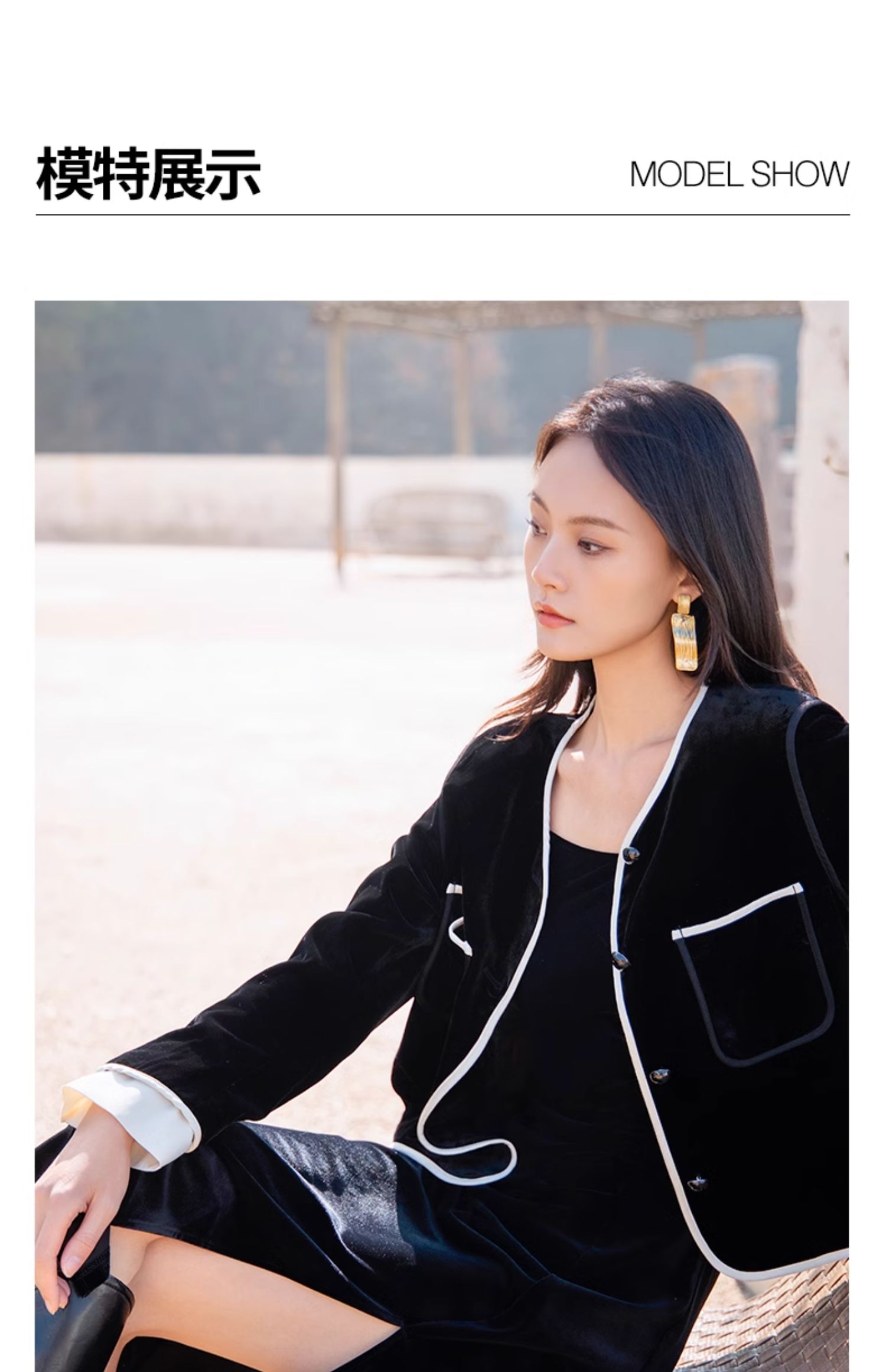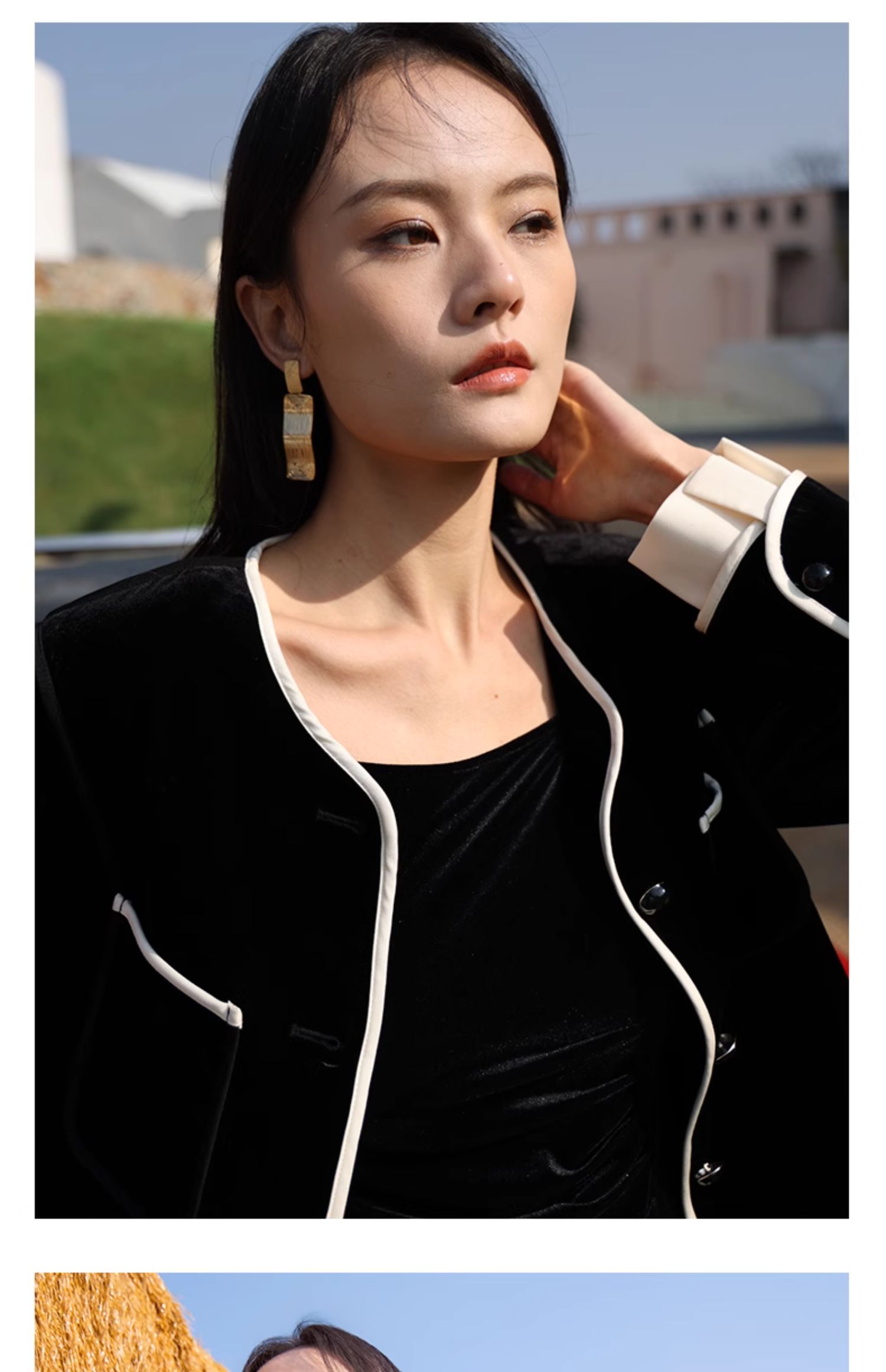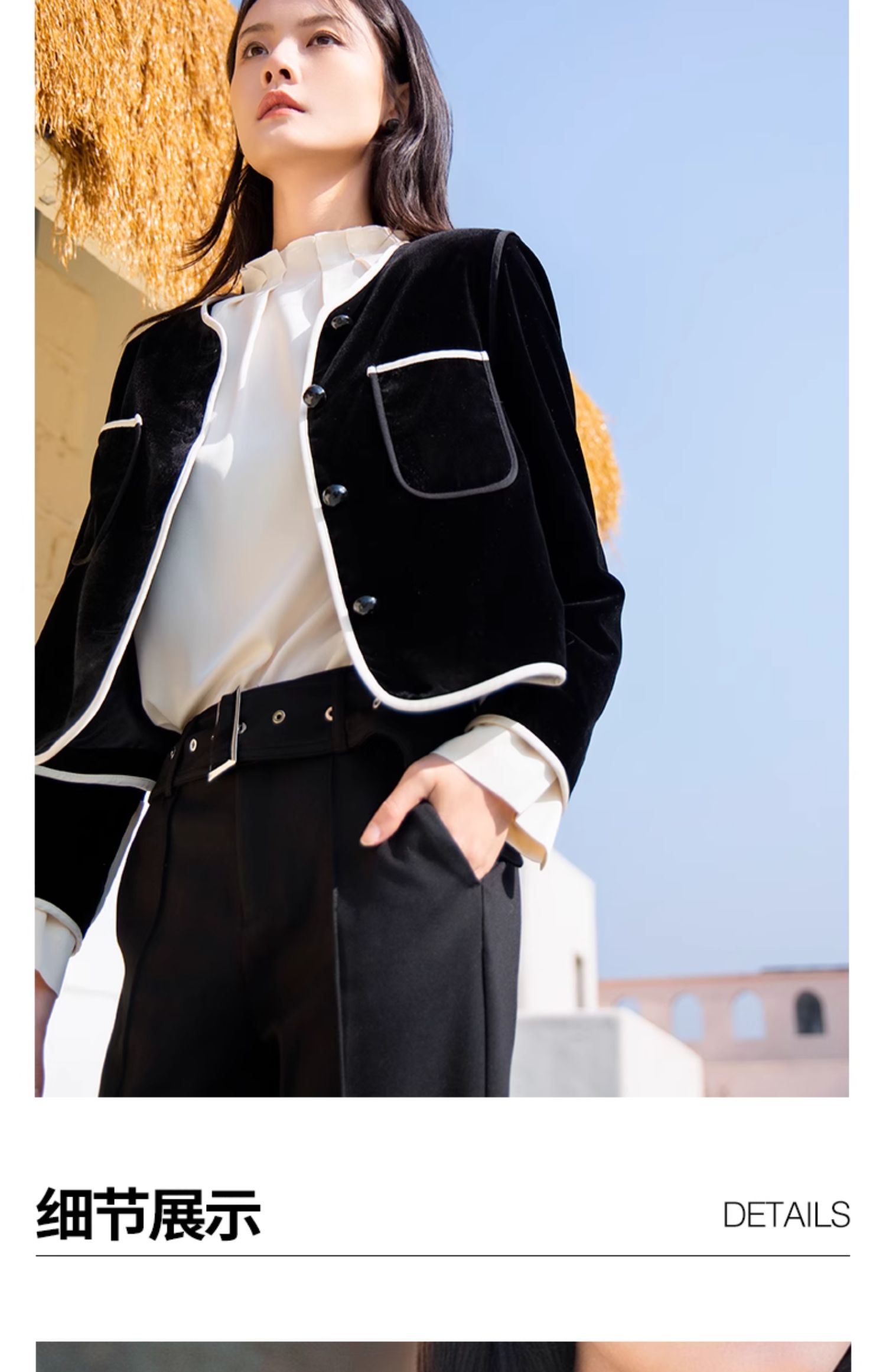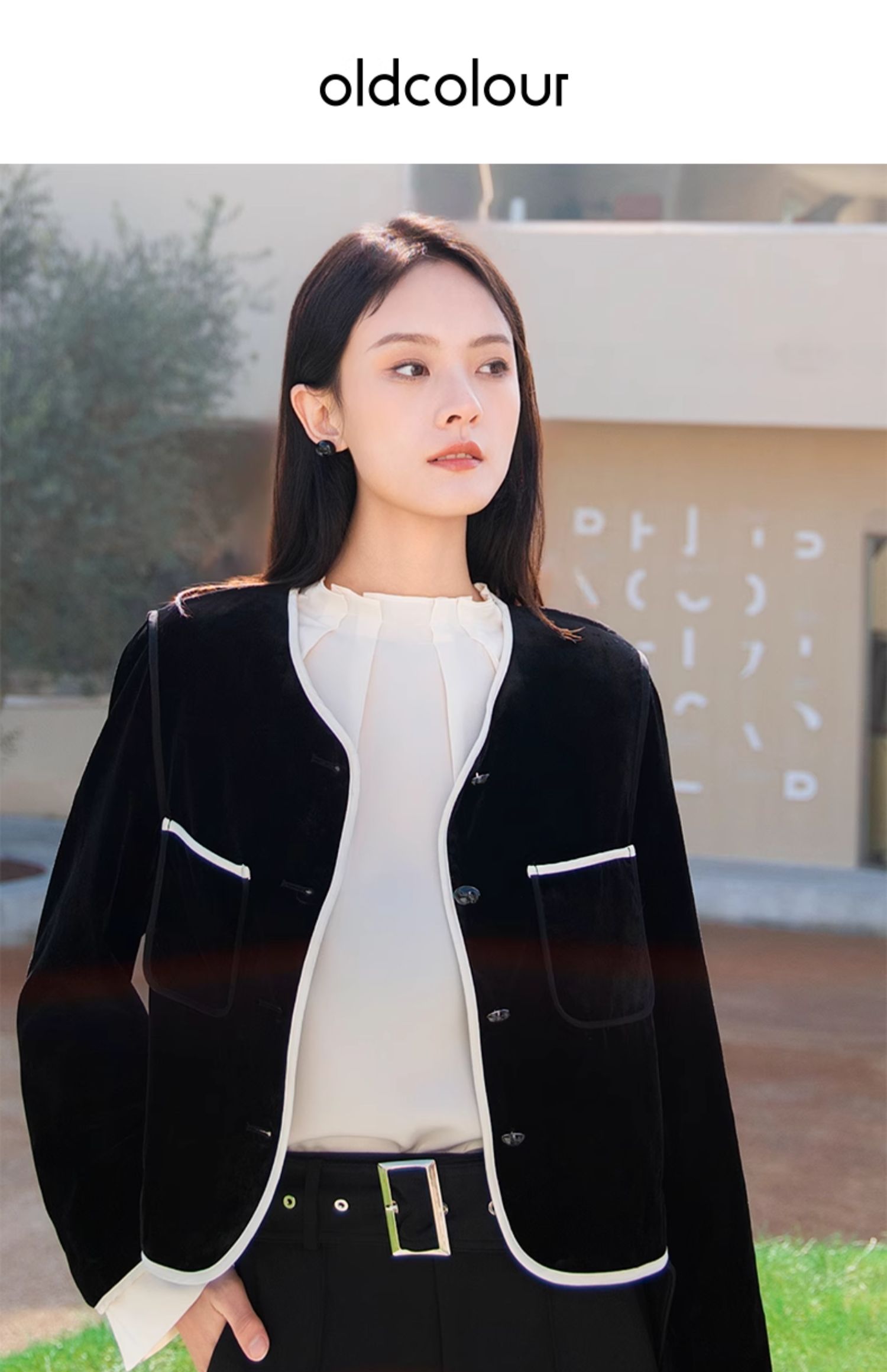 oldcolour春季新款黑色简约气质时尚百搭宽松短外套女Q110418A1