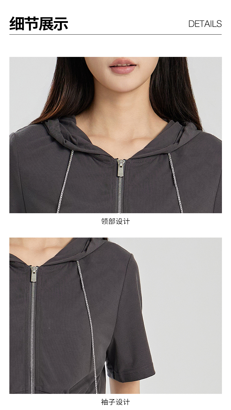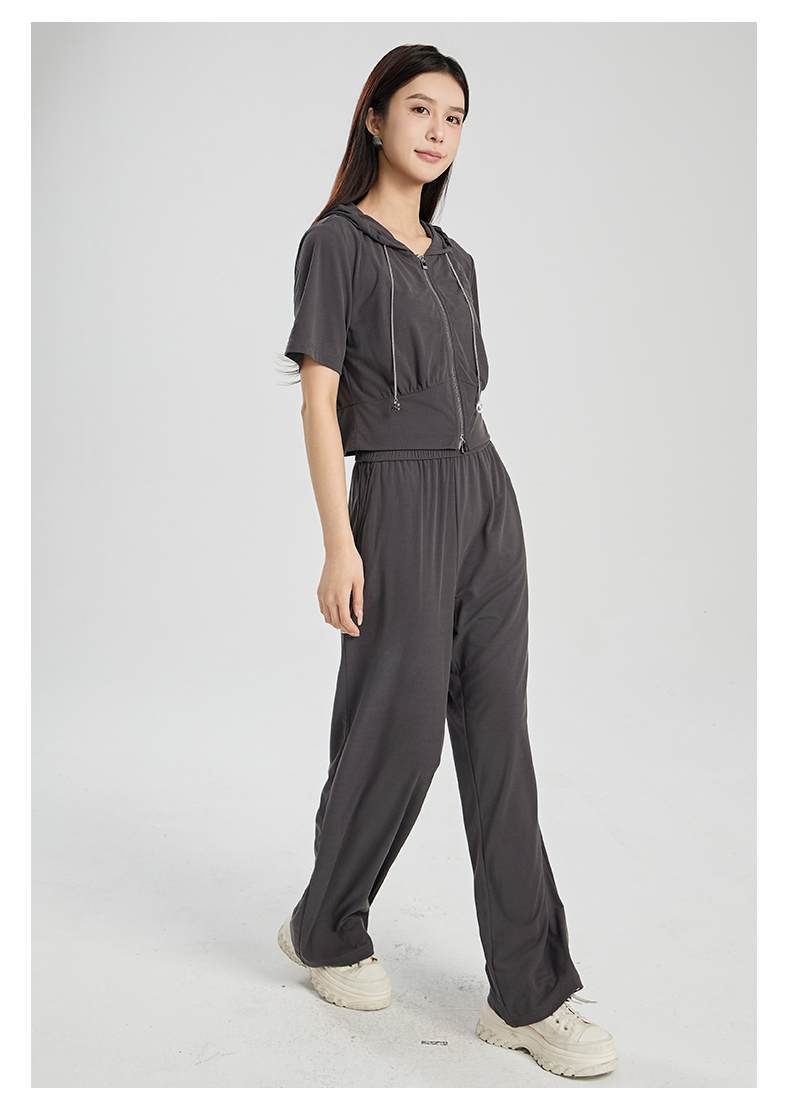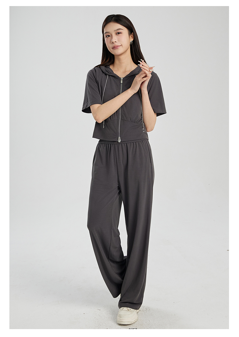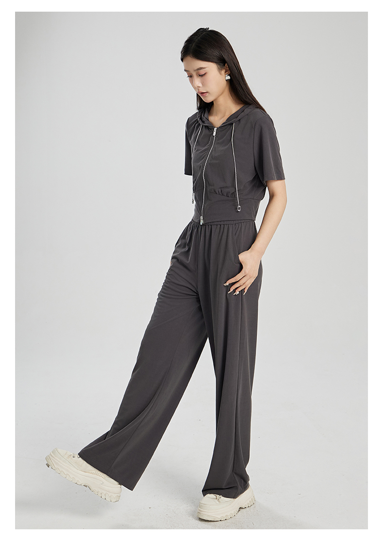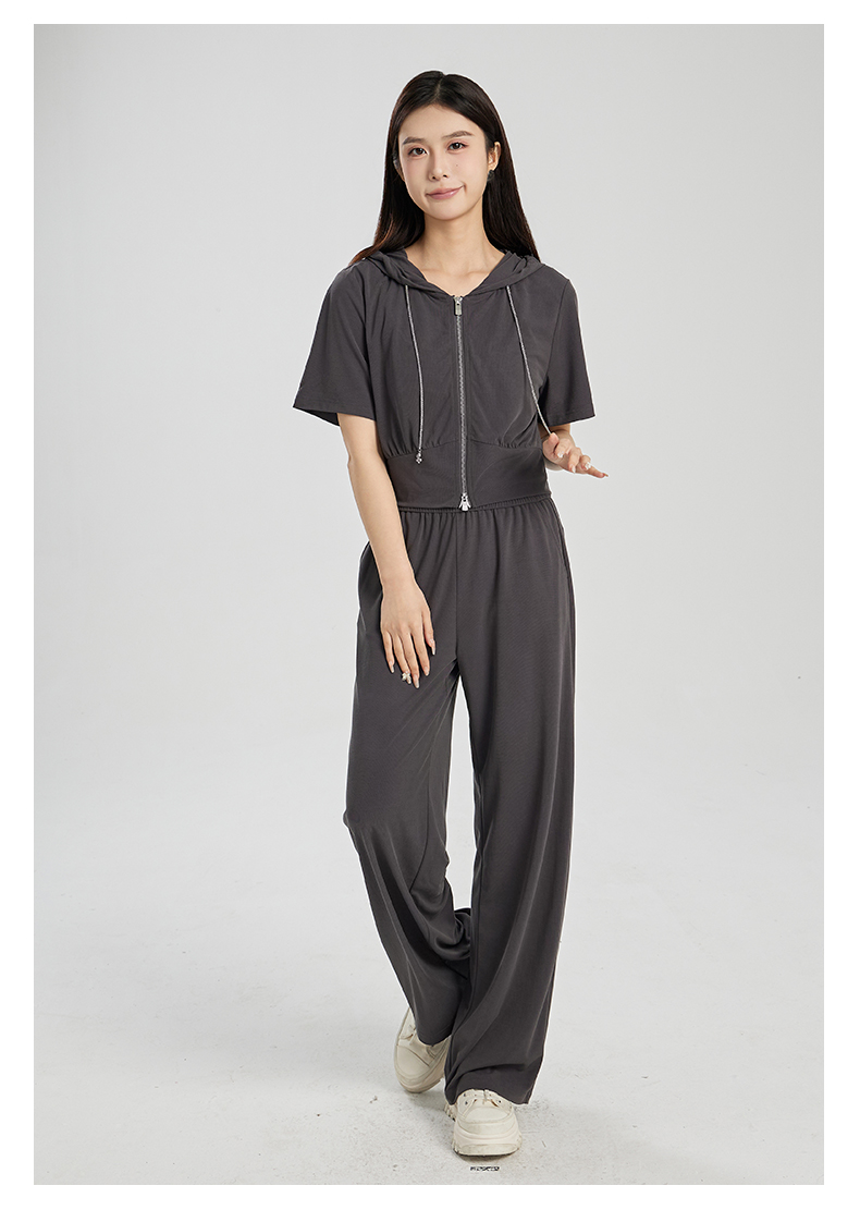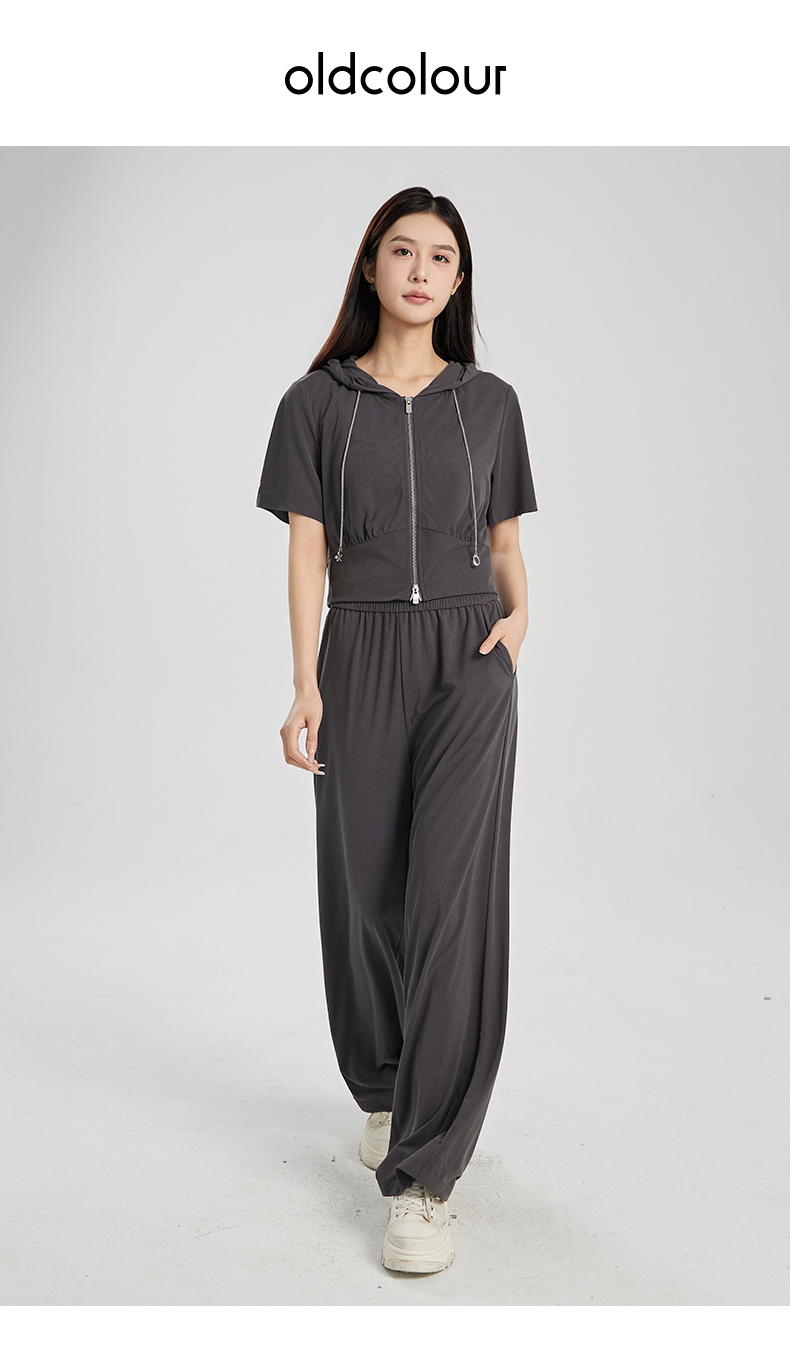 oldcolour夏季新款灰色简约气质运动休闲连帽卫衣套装女Q281401A1