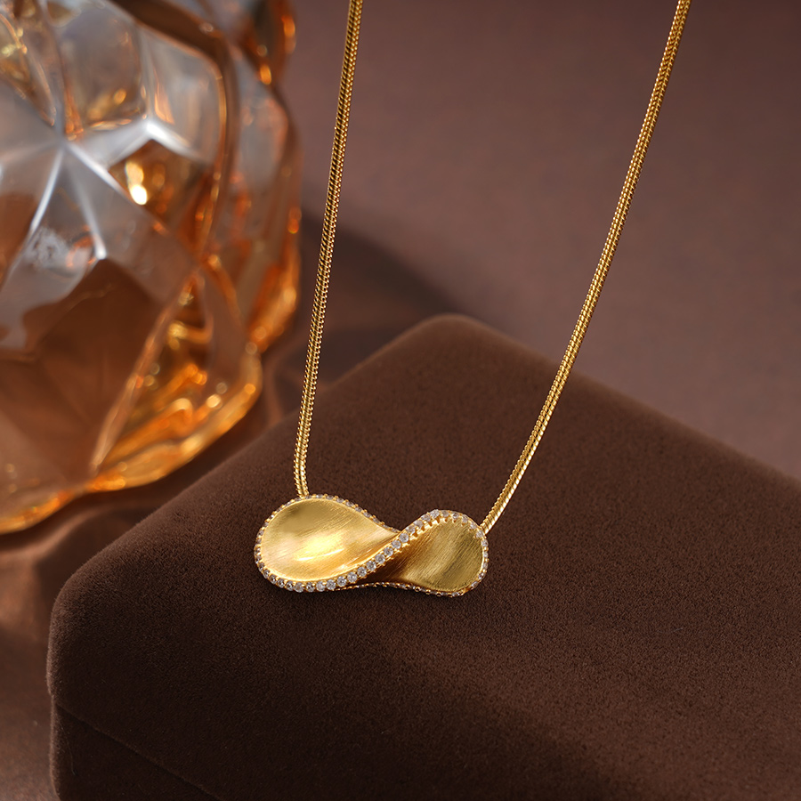 【寓意】:莫比乌斯环纯银项链,通体镀金处理,边缘微镶锆石,如星光点缀,灵动婉转,华贵优雅。寓意魅力永恒无尽。