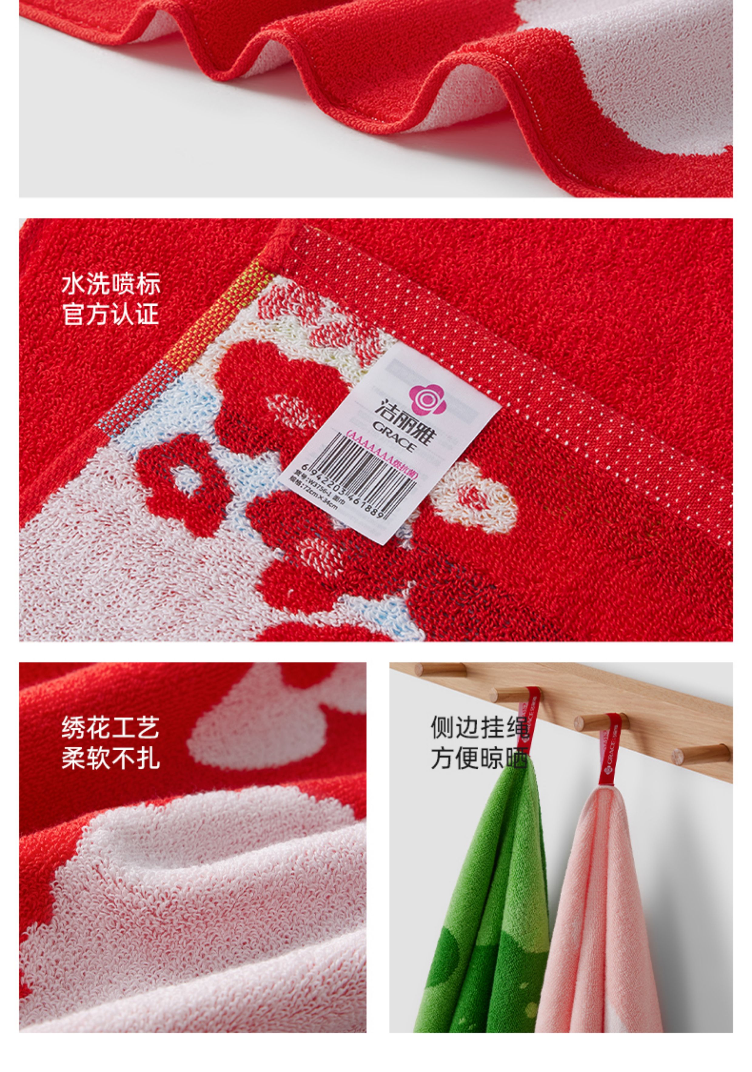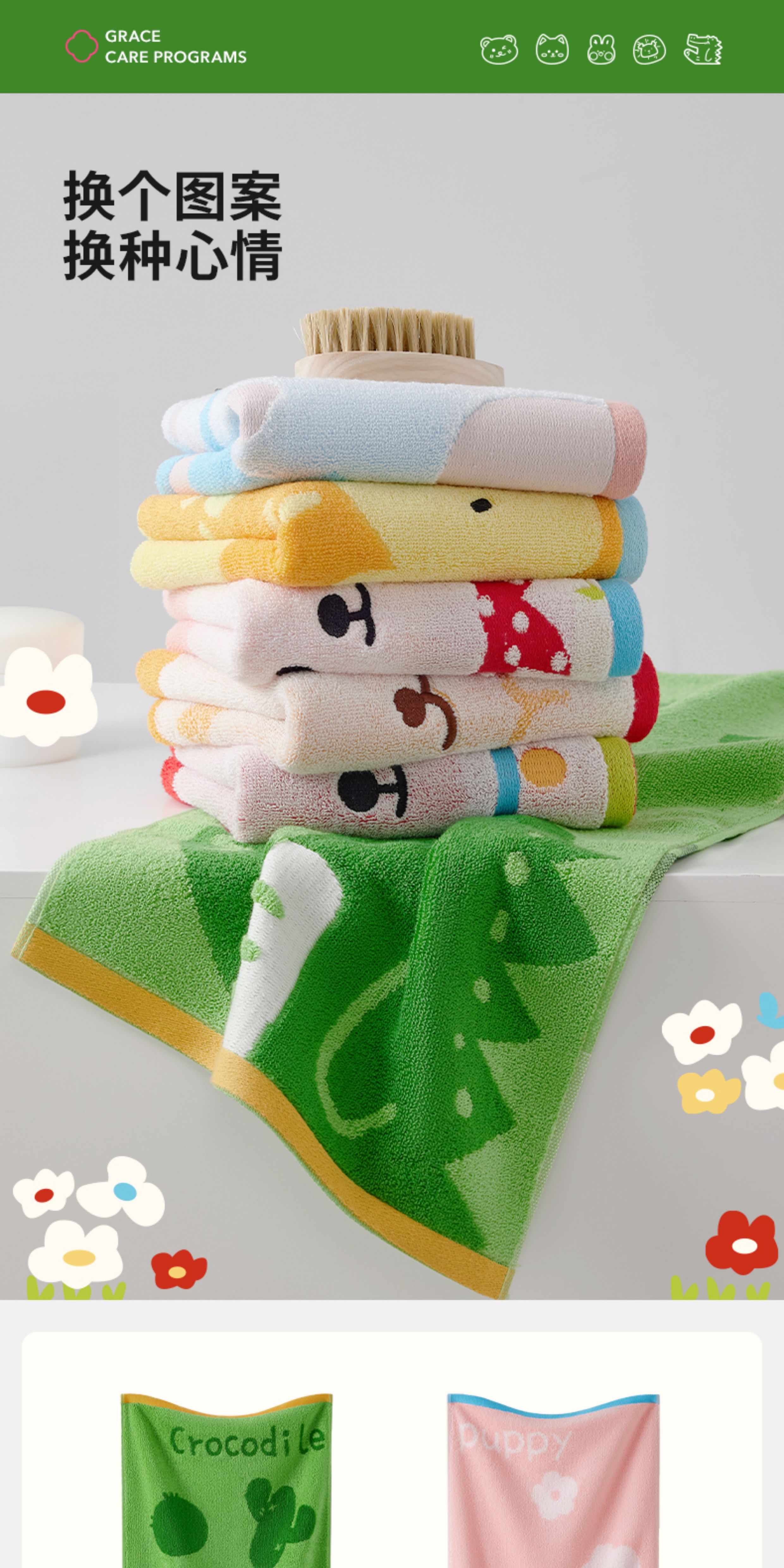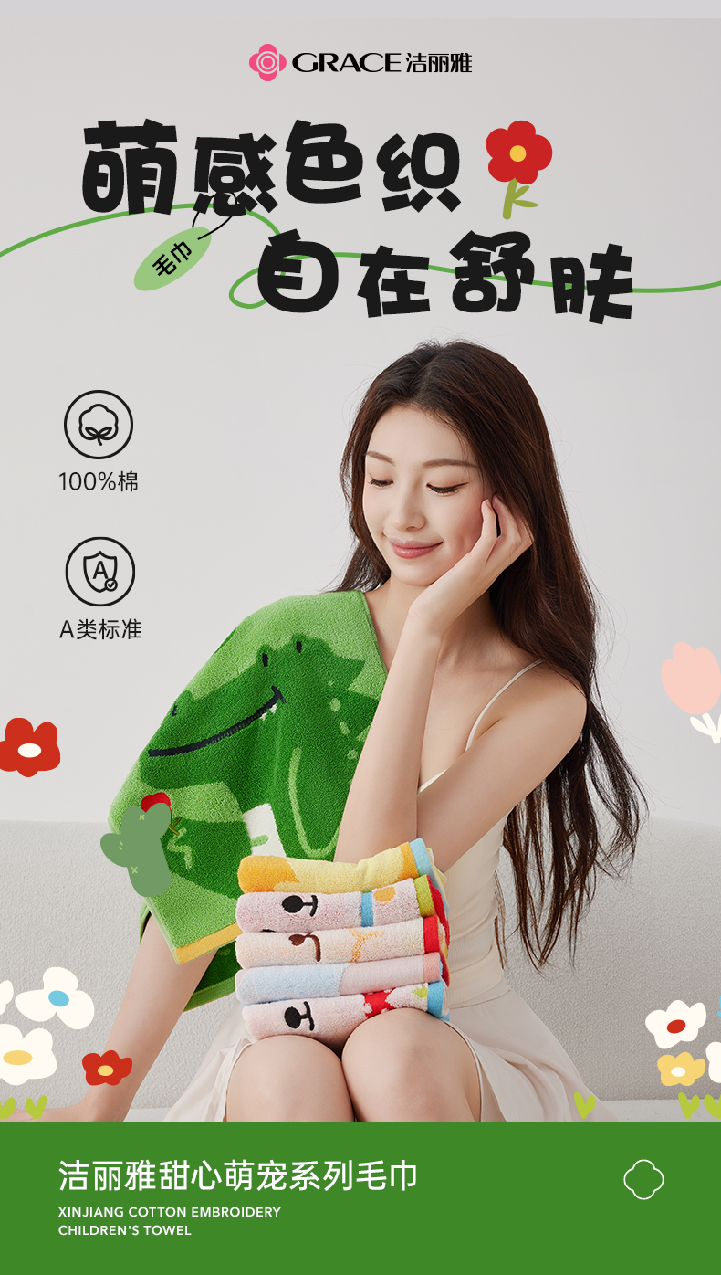 洁丽雅全棉毛巾儿童女家用洗脸面巾吸水不易掉毛柔软面巾可爱春夏