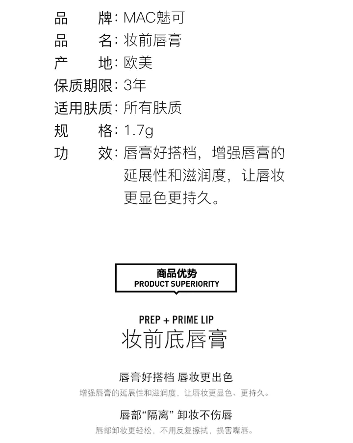 【香港直邮】魅可妆前唇膏1.7g 唇部打底 护唇滋润