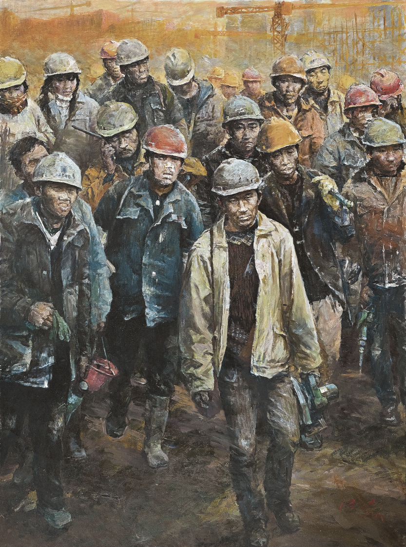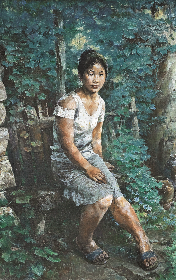 《徐达油画作品集》收录的油画作品中,以人物居多,也都是些日常生活中普普通通的群众形象,有质朴的建筑工人、辛勤的乡村农妇、清纯的林间少女、专注的苏州绣娘,这些芸芸众生跃然纸上,呈现出真实的乡村景象。富有生机的画面、有力干净的线条体现出生命的勃勃生机,流淌出厚重醇浓的乡情。徐达的艺术创作立足于生命中对美的一种体验和表达,甚至是刻意回避或黯淡了所谓哲理、思辨和启迪理性思维的元素,所画的皆其所思所见,而其所思所见中,又悄然包藏着徐达作为艺术家的哲思和敏感。