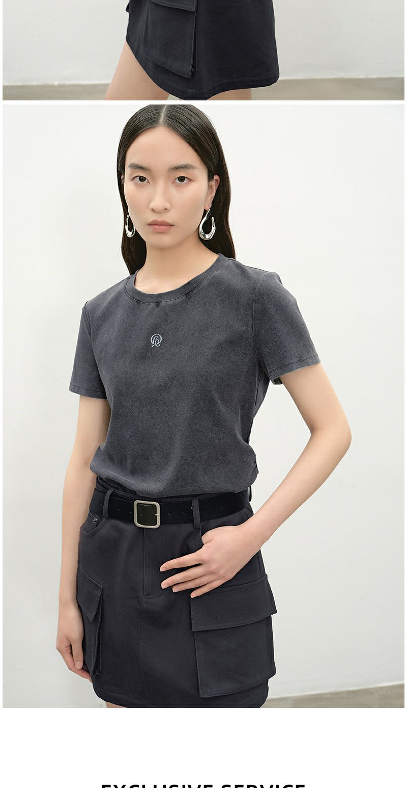 NEELLY纳俪商场同款夏季新款经典修身短袖T恤女圆领百搭显瘦上衣N25053T01165